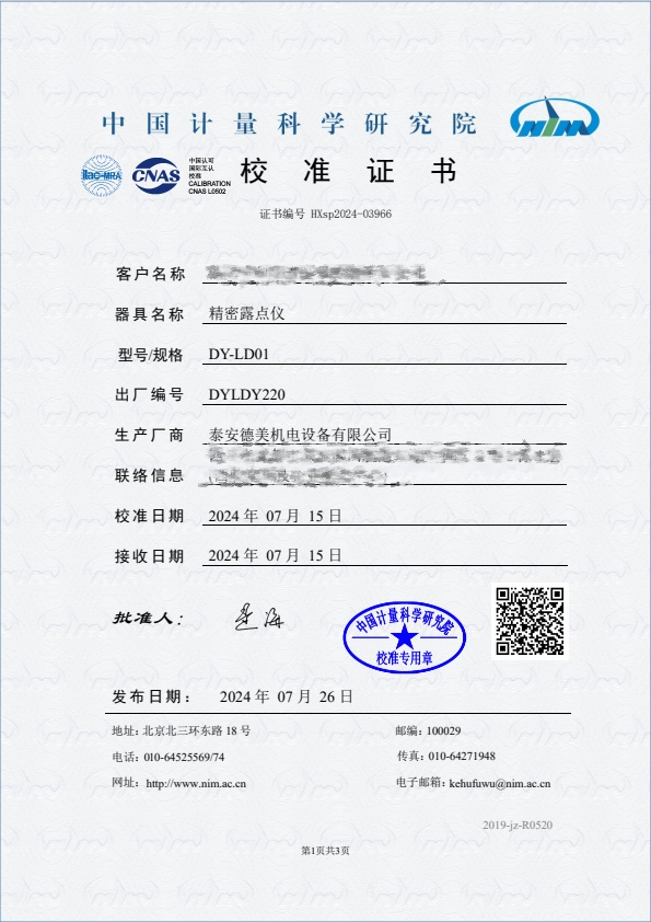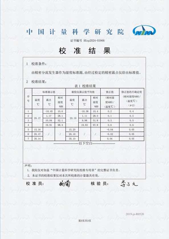露點(diǎn)儀校準(zhǔn)證書 2024-7-29 本文被閱讀 7724 次