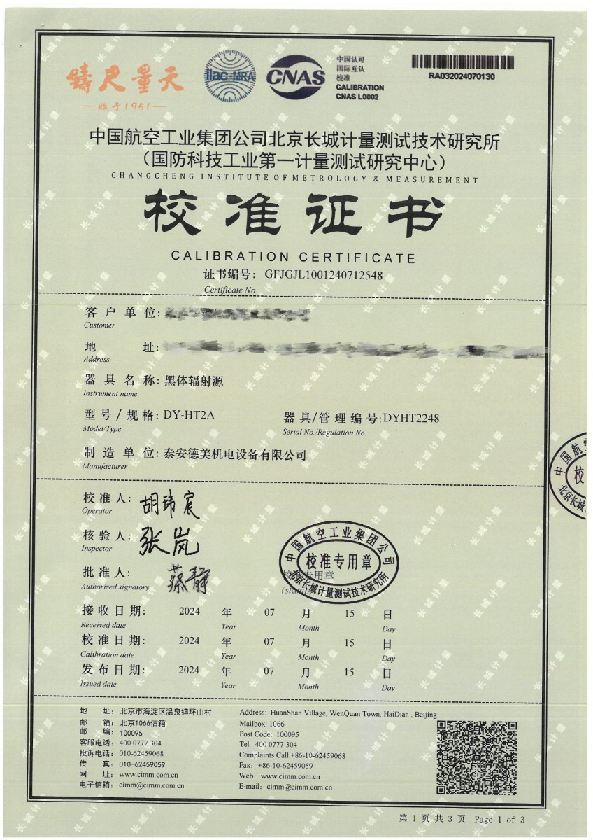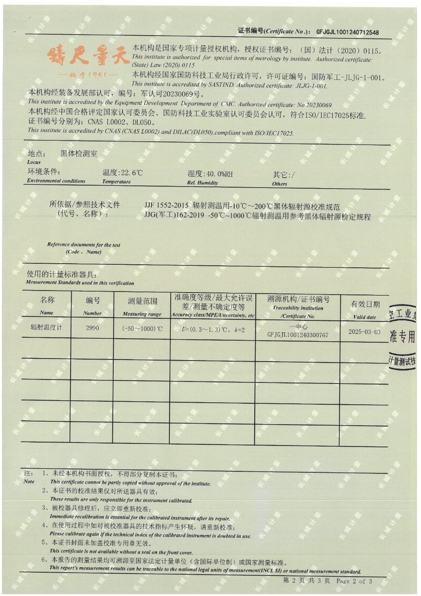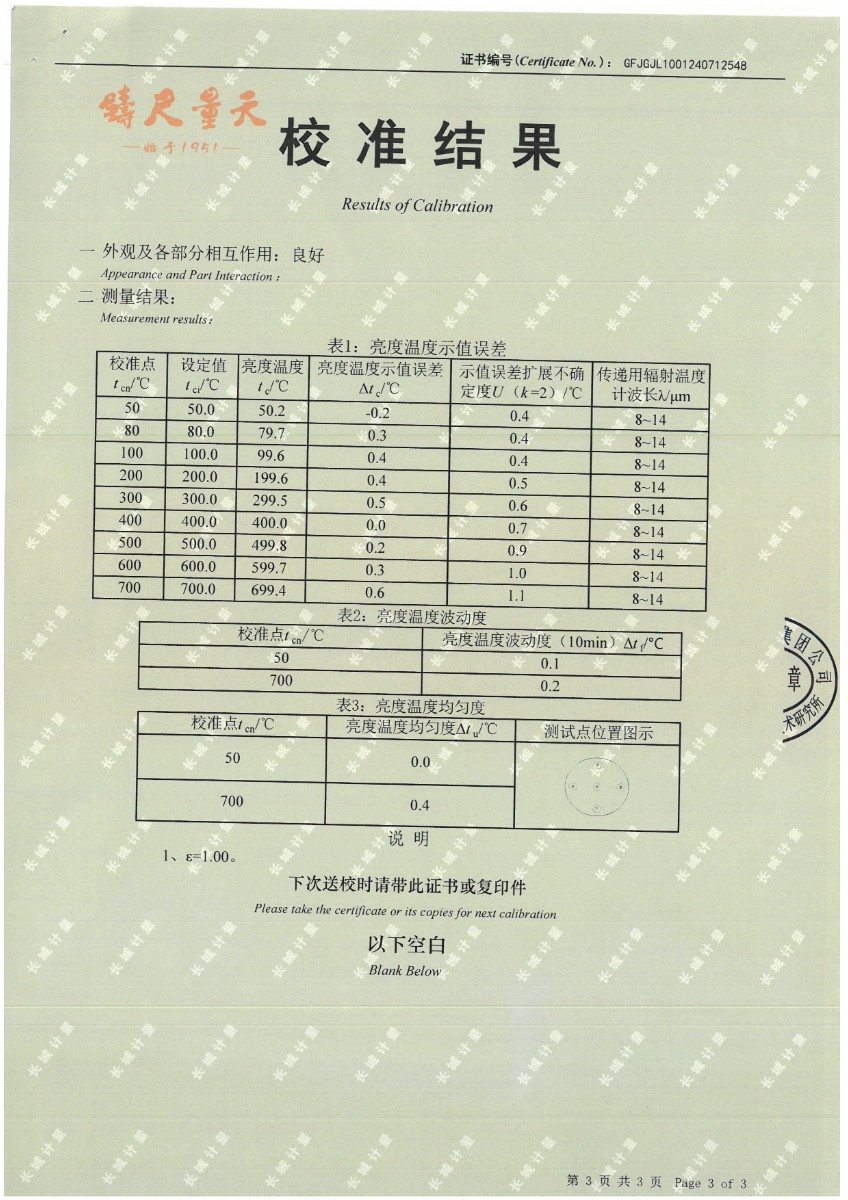 黑體(50~700℃)校準(zhǔn)證書 2024-7-29 本文被閱讀 9628 次