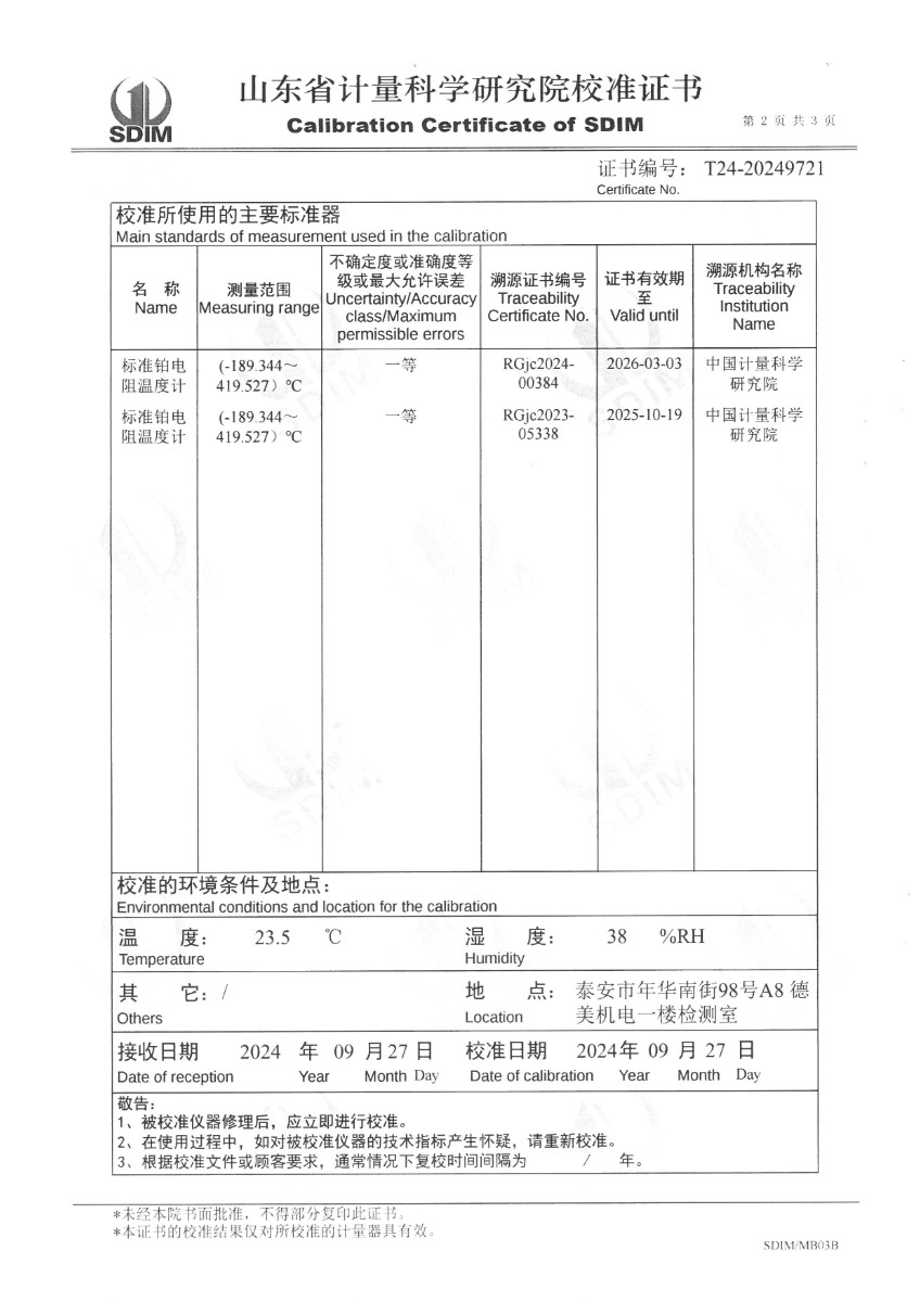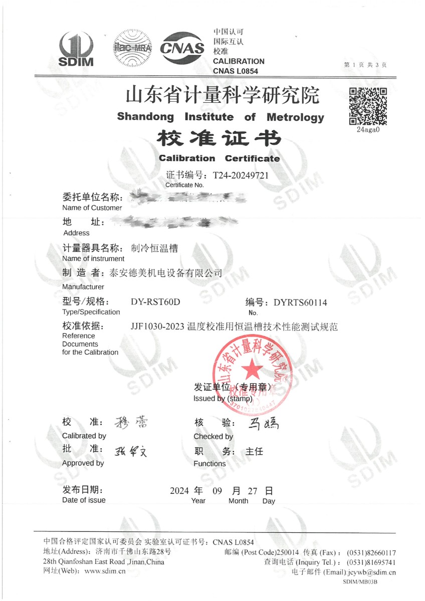 | 上一條:DY-YC-550高精度恒溫鹽槽(160℃~550(600℃)) | 下一條:智能干體儀(六位半精度)校準(zhǔn)證書 |