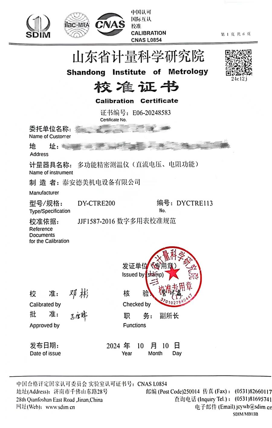 多功能測溫儀校準(zhǔn)證書 2024-10-11 本文被閱讀 8145 次