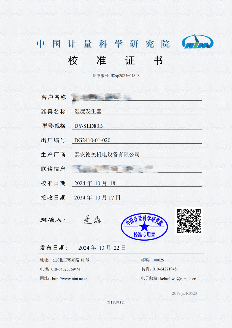 標(biāo)準(zhǔn)濕度發(fā)生器校準(zhǔn)證書 2024-10-25 本文被閱讀 7350 次