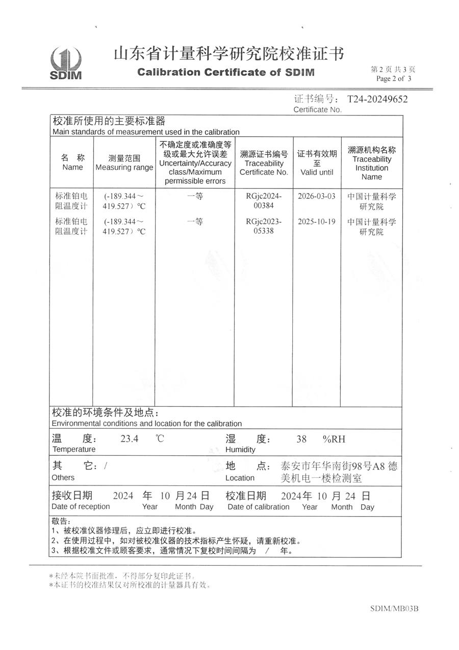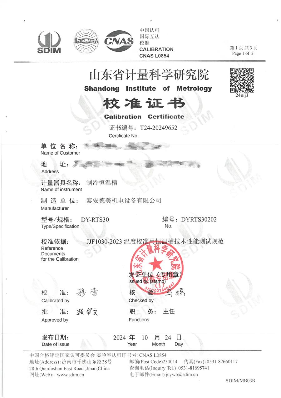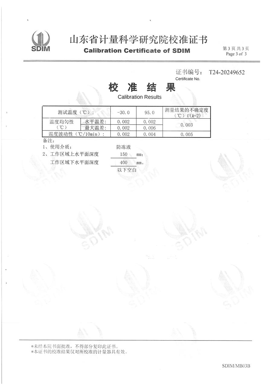 制冷恒溫槽(-30-95℃)校準證書 2024-11-2 本文被閱讀 6879 次