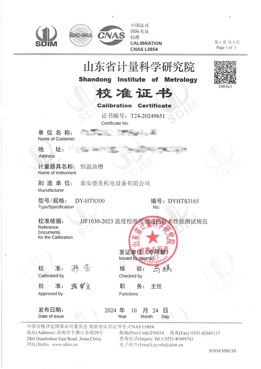 | 上一條:制冷恒溫槽(-30-95℃)校準(zhǔn)證書(shū) | 下一條:智能干體儀(六位半精度)校準(zhǔn)證書(shū) |