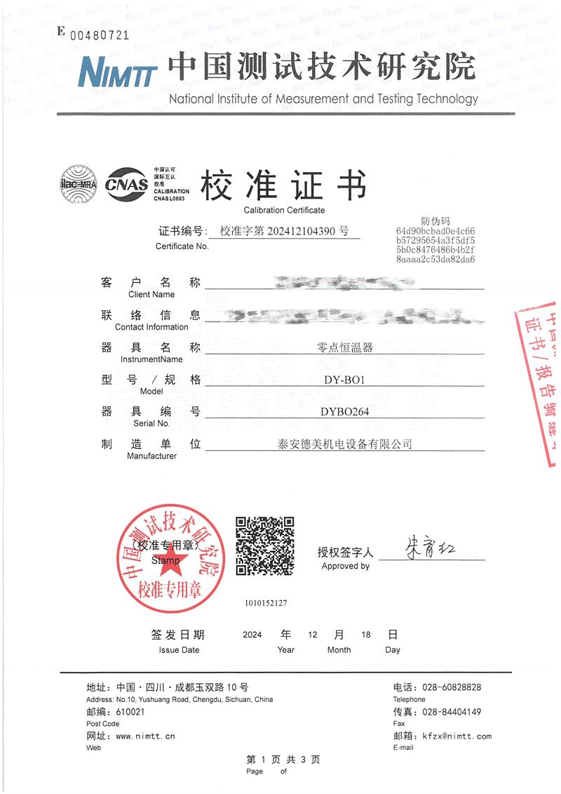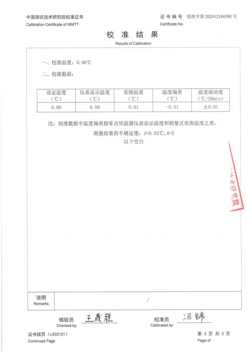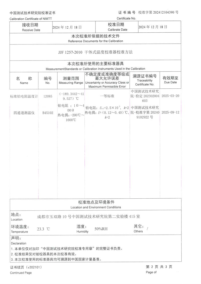 | 上一條:低溫浴式面源黑體爐(-50-80℃)校準(zhǔn)證書 | 下一條:智能干體儀(六位半精度)校準(zhǔn)證書 |