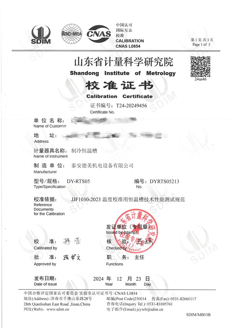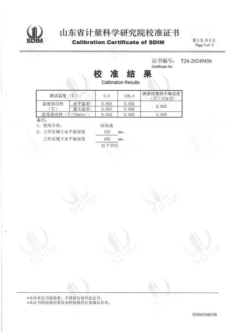 制冷恒溫槽(0~100℃)校準(zhǔn)證書 2024-12-26 本文被閱讀 6067 次