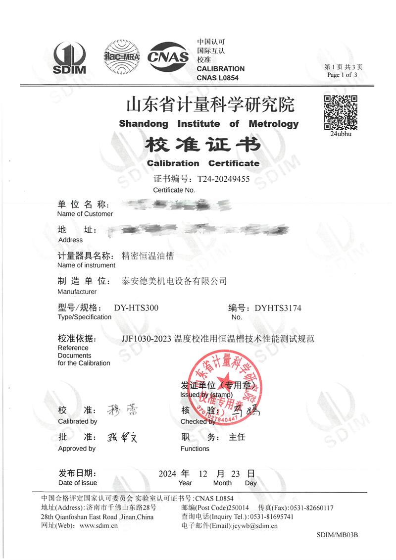 | 上一條:制冷恒溫槽(0~100℃)校準(zhǔn)證書(shū) | 下一條:智能干體儀(六位半精度)校準(zhǔn)證書(shū) |