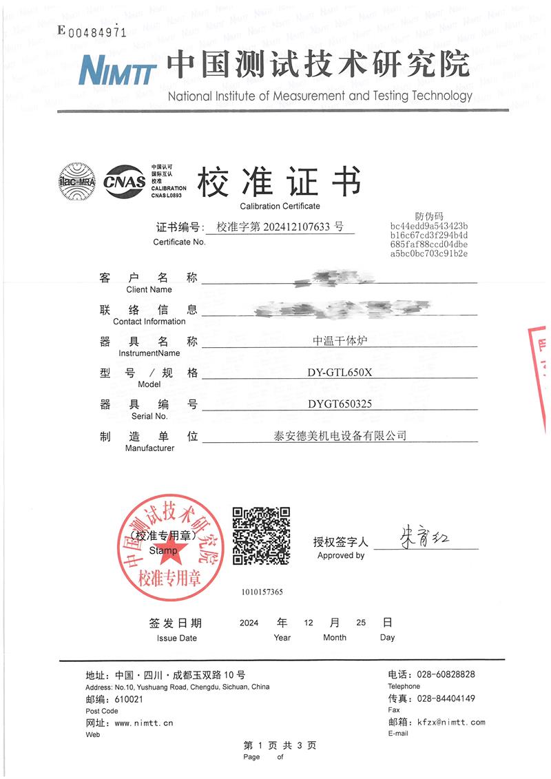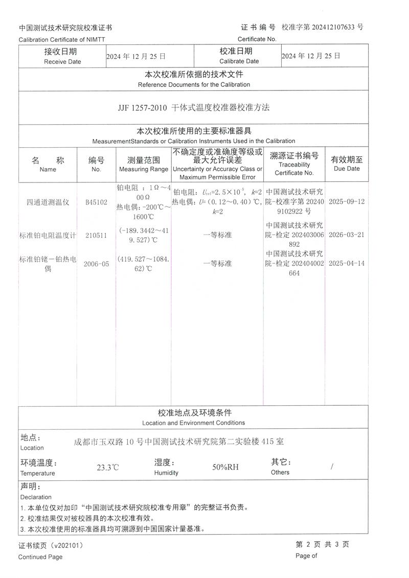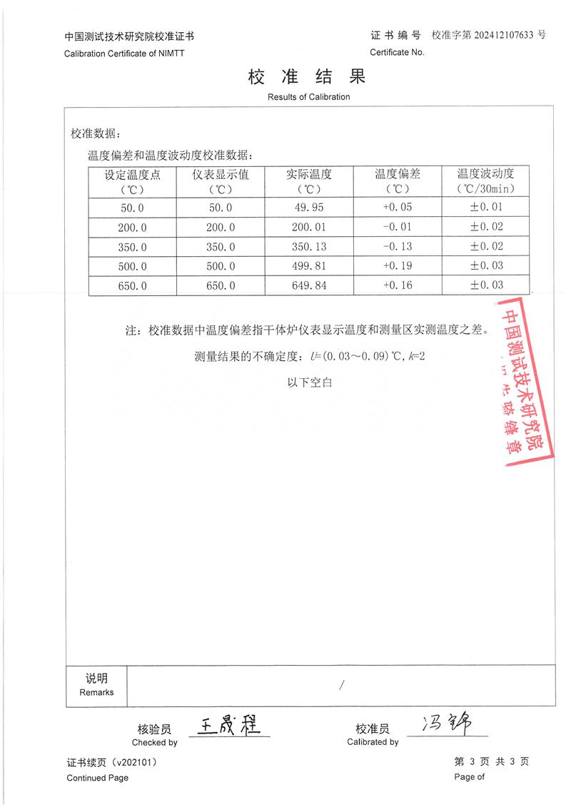 | 上一條:高精度熱管恒溫槽(50~300℃)校準(zhǔn)證書 | 下一條:智能干體儀(六位半精度)校準(zhǔn)證書 |