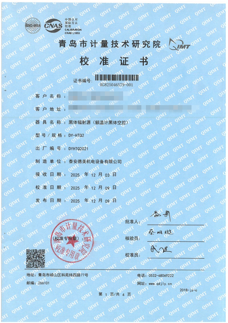 額溫計黑體空腔校準(zhǔn)證書 2025-12-18 本文被閱讀 69 次