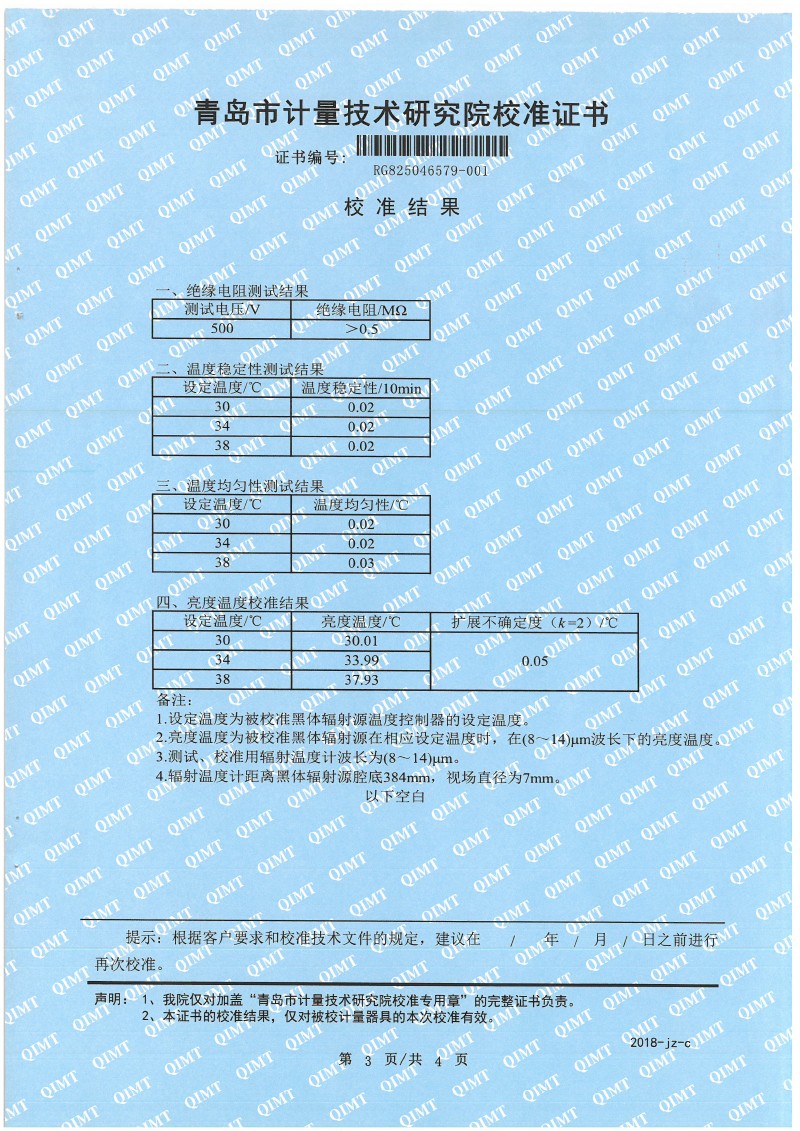 額溫計黑體空腔校準(zhǔn)證書
