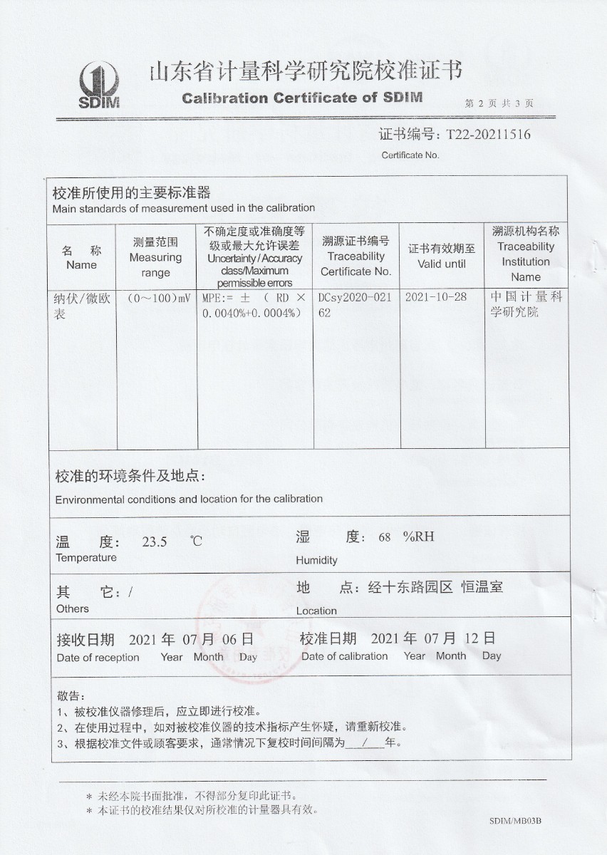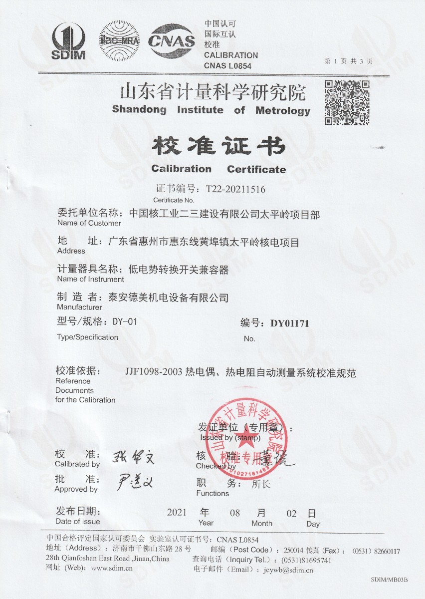 | 上一條:中國核工業(yè)二三建設(shè)有限公司太平嶺項目部水平尺專用校準(zhǔn)臺 | 下一條:智能干體儀(六位半精度)校準(zhǔn)證書 |