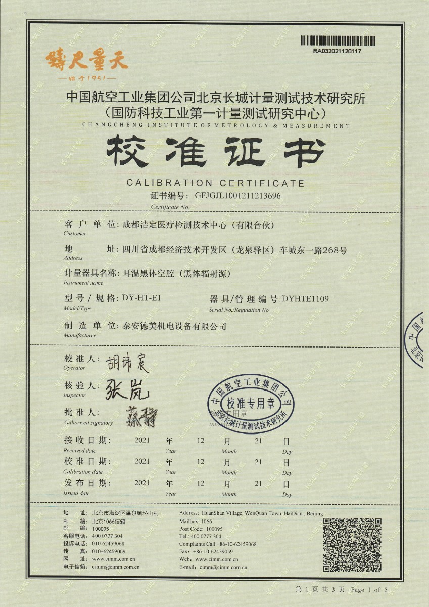 上一條:成都潔定醫(yī)療檢測技術-額溫黑體空腔下一條:智能干體儀(六位半精度)校準證書