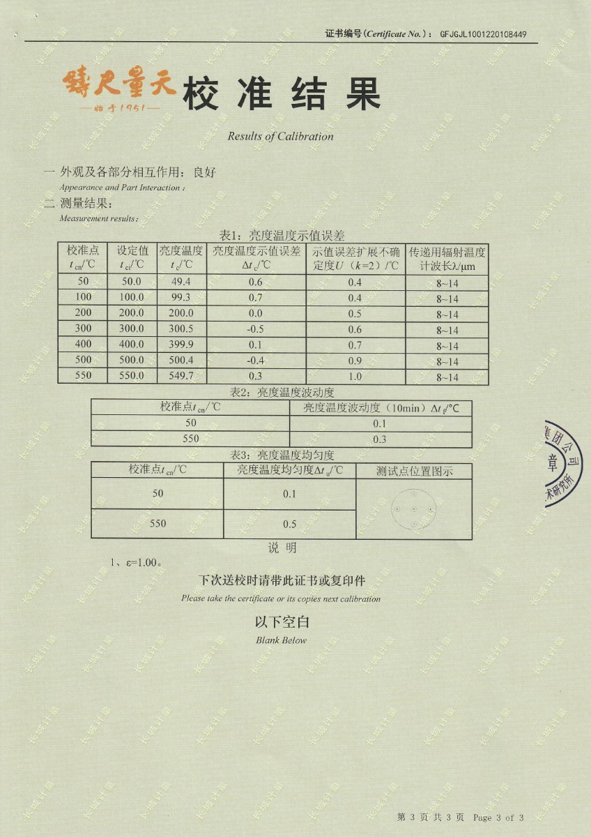 | 上一條:北京智慧共享技術(shù)服務(wù)有限公司-面源黑體爐 | 下一條:智能干體儀(六位半精度)校準(zhǔn)證書 |