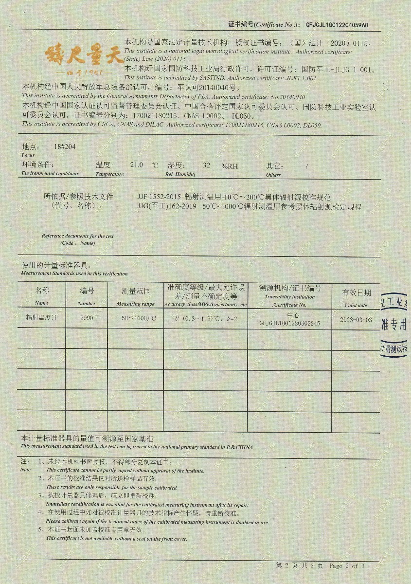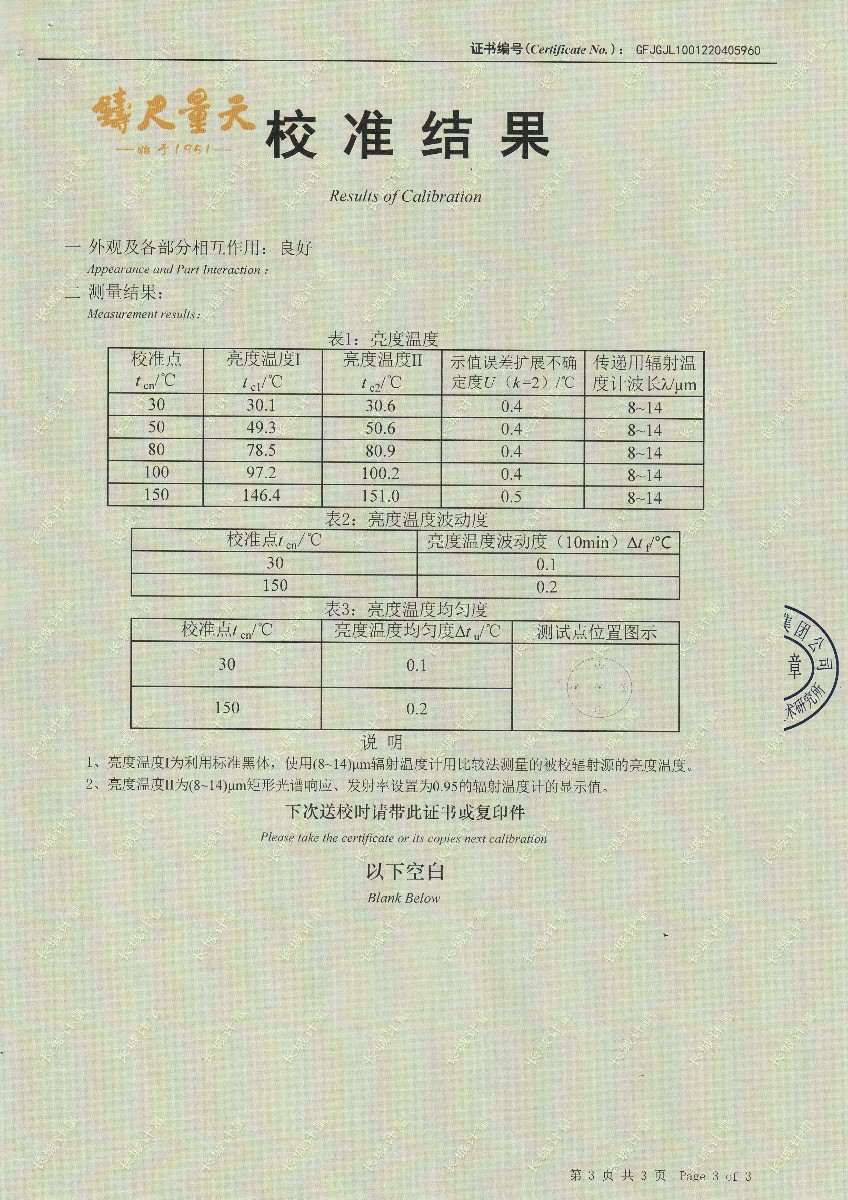 | 上一條:浙江弘志計(jì)量測(cè)試有限公司-黑體輻射源 | 下一條:智能干體儀(六位半精度)校準(zhǔn)證書(shū) |