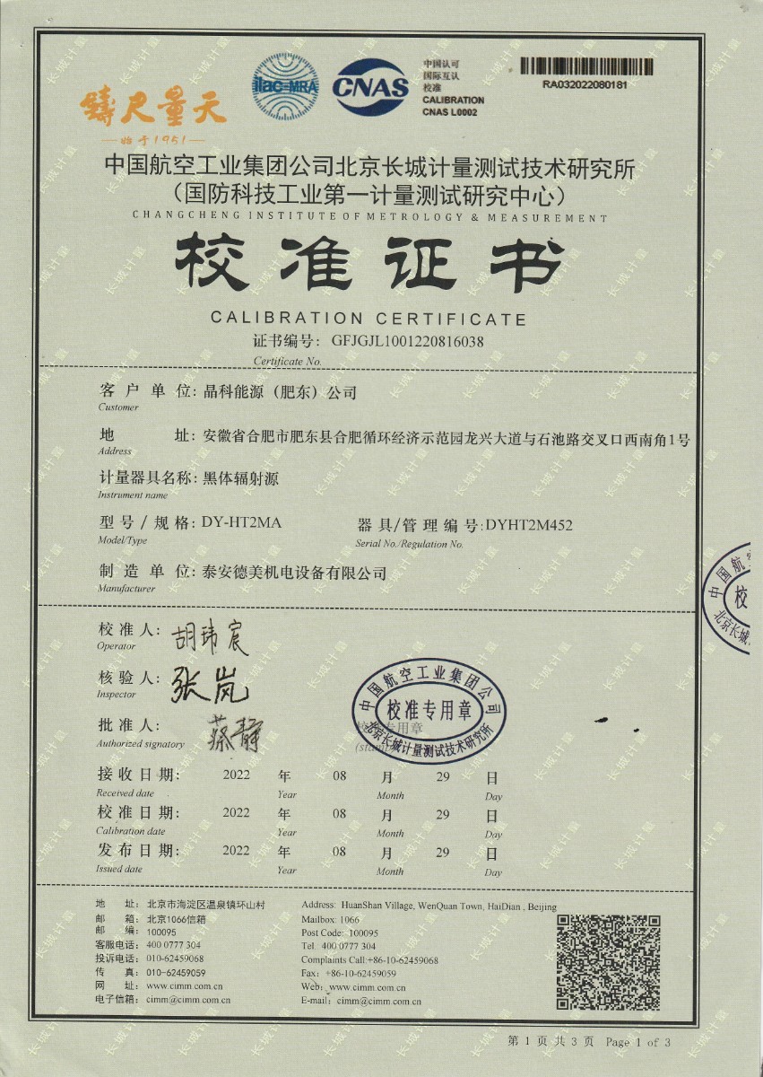 晶科能源(肥東)公司-黑體輻射源 2022-9-5 本文被閱讀 12656 次