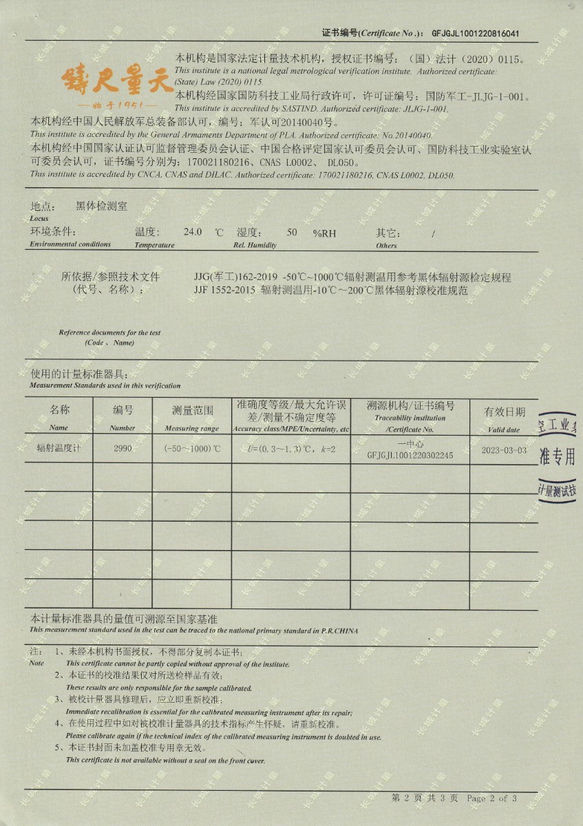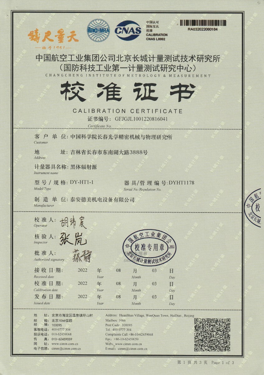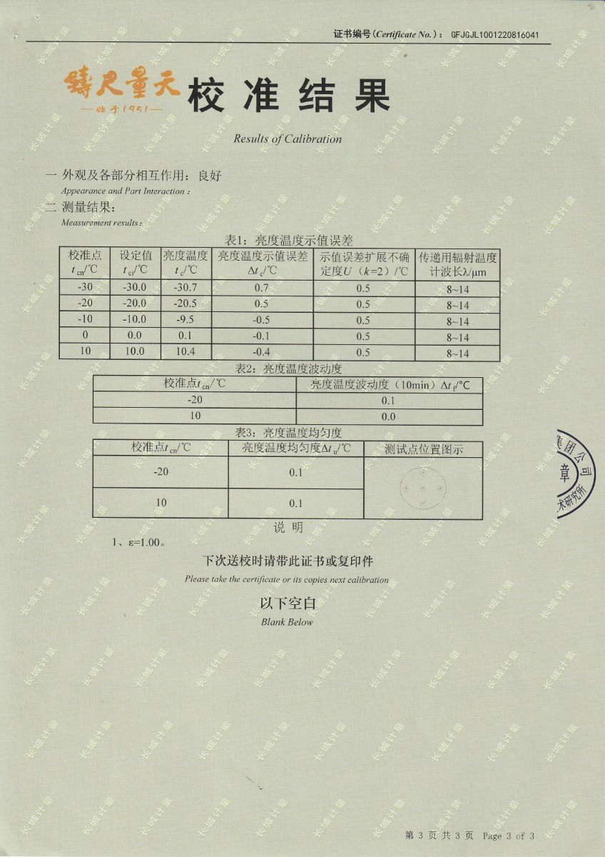 | 上一條:晶科能源(金昌)公司-黑體輻射源 | 下一條:智能干體儀(六位半精度)校準(zhǔn)證書(shū) |