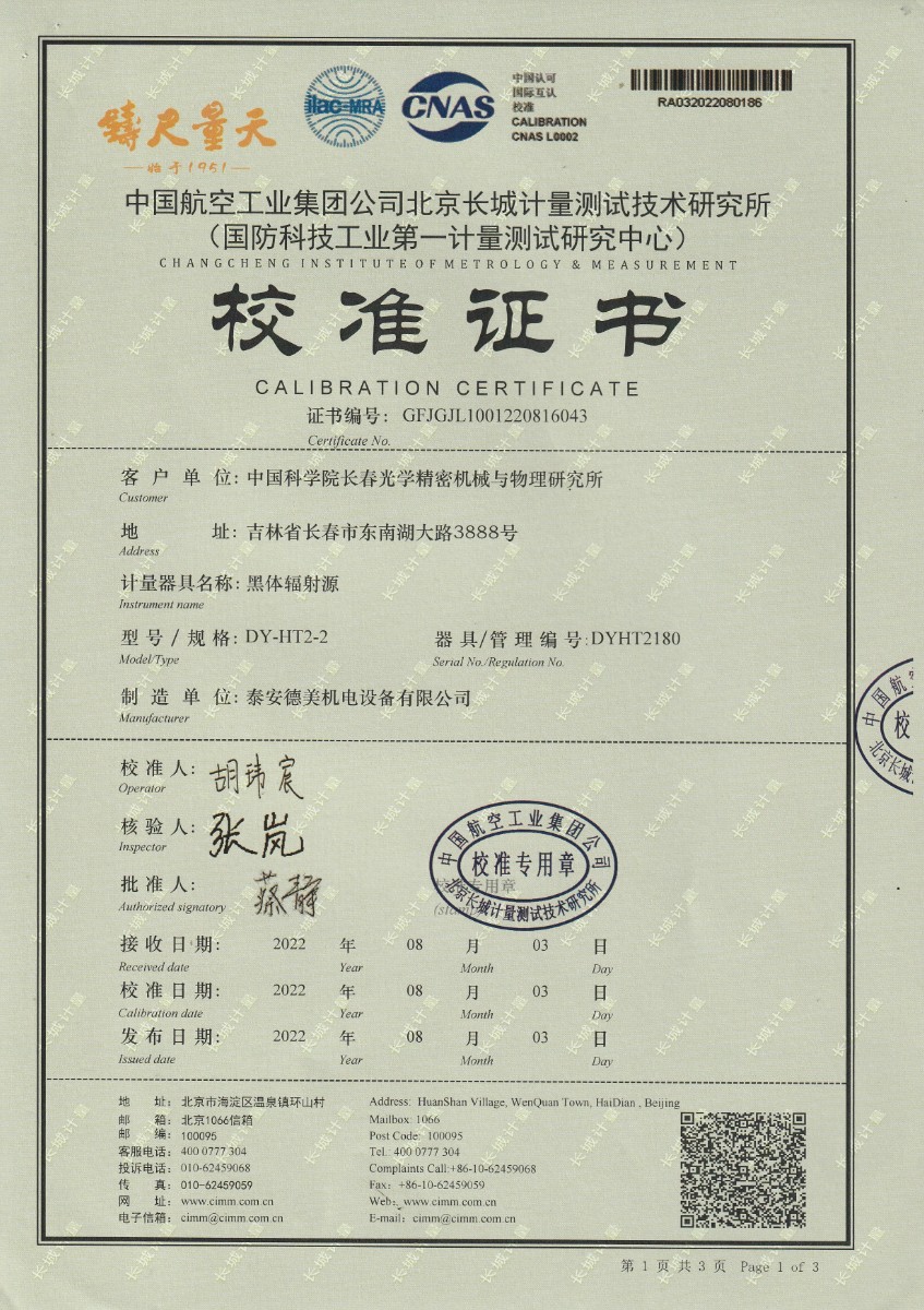 上一條:中國科學院長春光學精密機械與物理研究所-黑體爐DY-HT2-1下一條:智能干體儀(六位半精度)校準證書