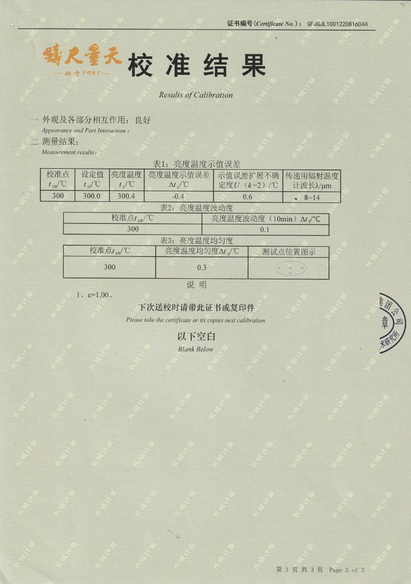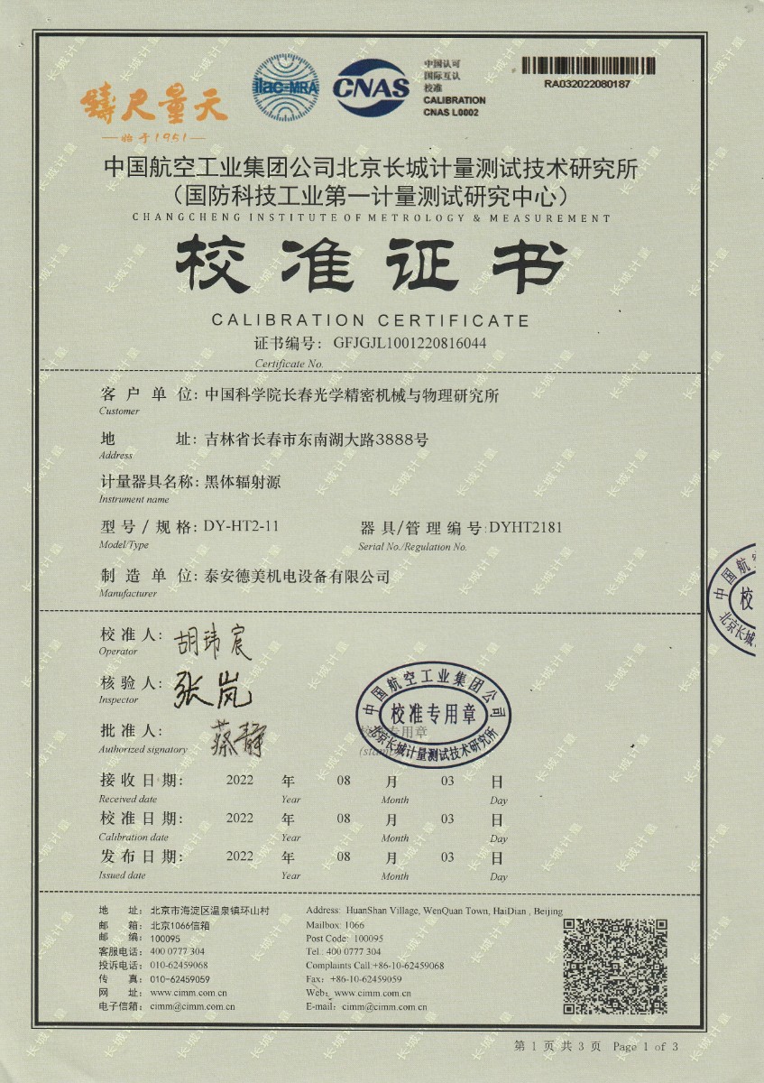 | 上一條:中國科學(xué)院長春光學(xué)精密機(jī)械與物理研究所-黑體爐DY-HT2-2 | 下一條:智能干體儀(六位半精度)校準(zhǔn)證書 |