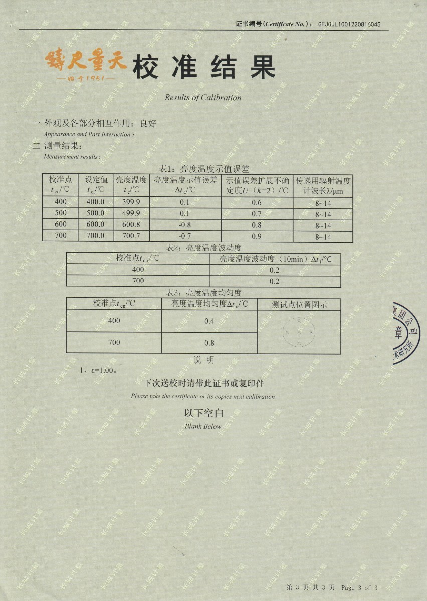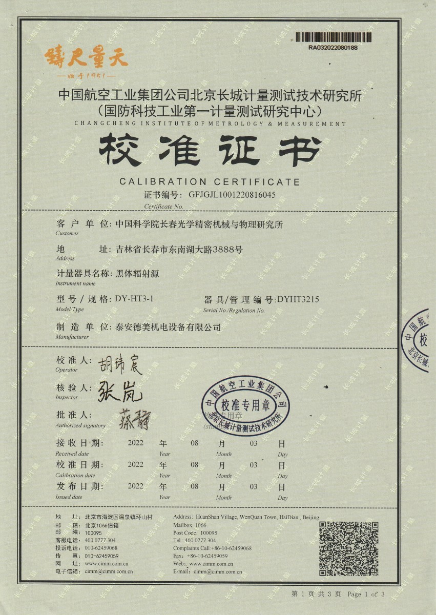 | 上一條:中國(guó)科學(xué)院長(zhǎng)春光學(xué)精密機(jī)械與物理研究所-黑體爐DY-HT2-11 | 下一條:智能干體儀(六位半精度)校準(zhǔn)證書 |