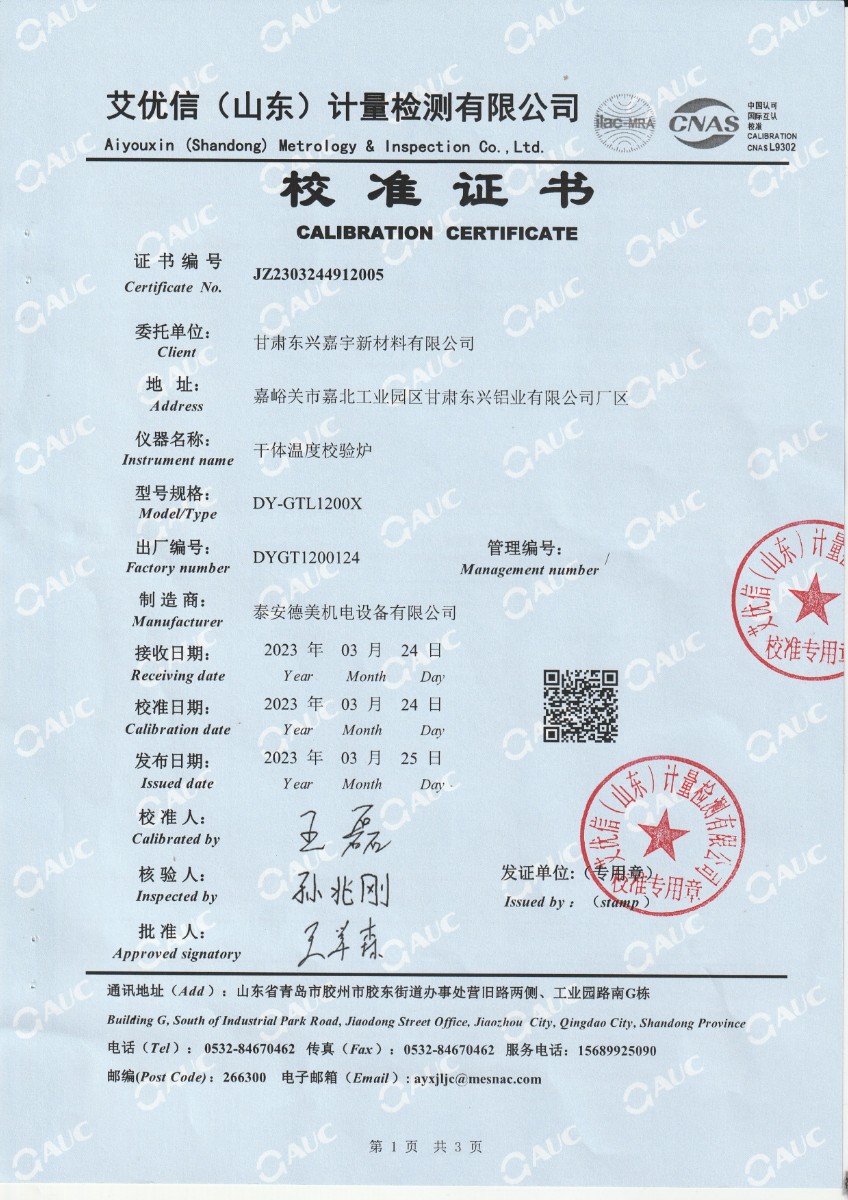 | 上一條:湖南長量檢測股份有限公司 黑體爐 校準(zhǔn)證書 | 下一條:智能干體儀(六位半精度)校準(zhǔn)證書 |