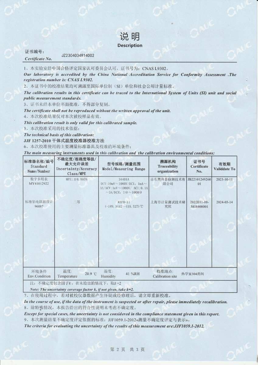 | 上一條:開封光利高科實(shí)業(yè)有限責(zé)任公司送變電公司 變壓器溫度計(jì)校驗(yàn)裝置 校準(zhǔn)證書(1) | 下一條:智能干體儀(六位半精度)校準(zhǔn)證書 |