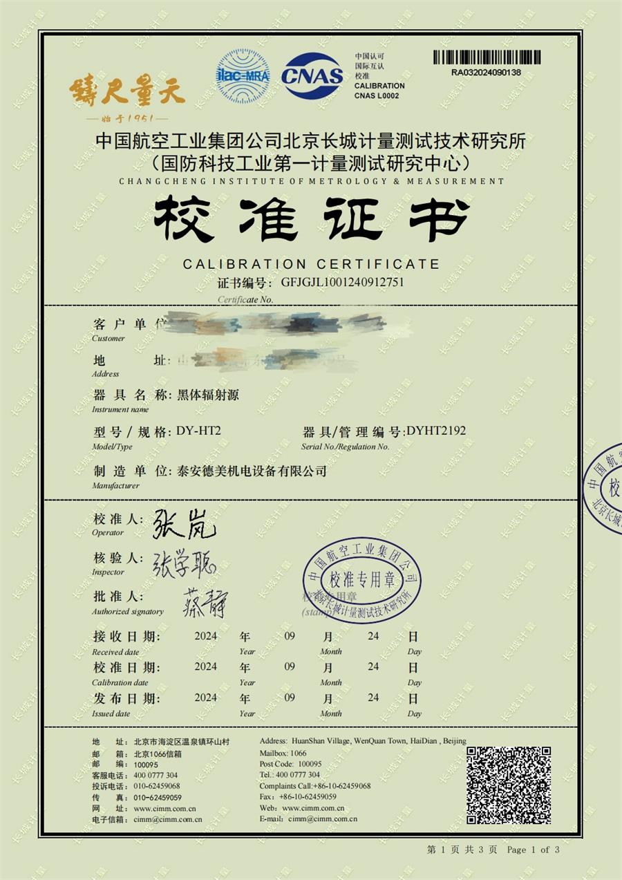 | 上一條:溫濕度巡檢儀校準(zhǔn)證書(shū) | 下一條:智能干體儀(六位半精度)校準(zhǔn)證書(shū) |