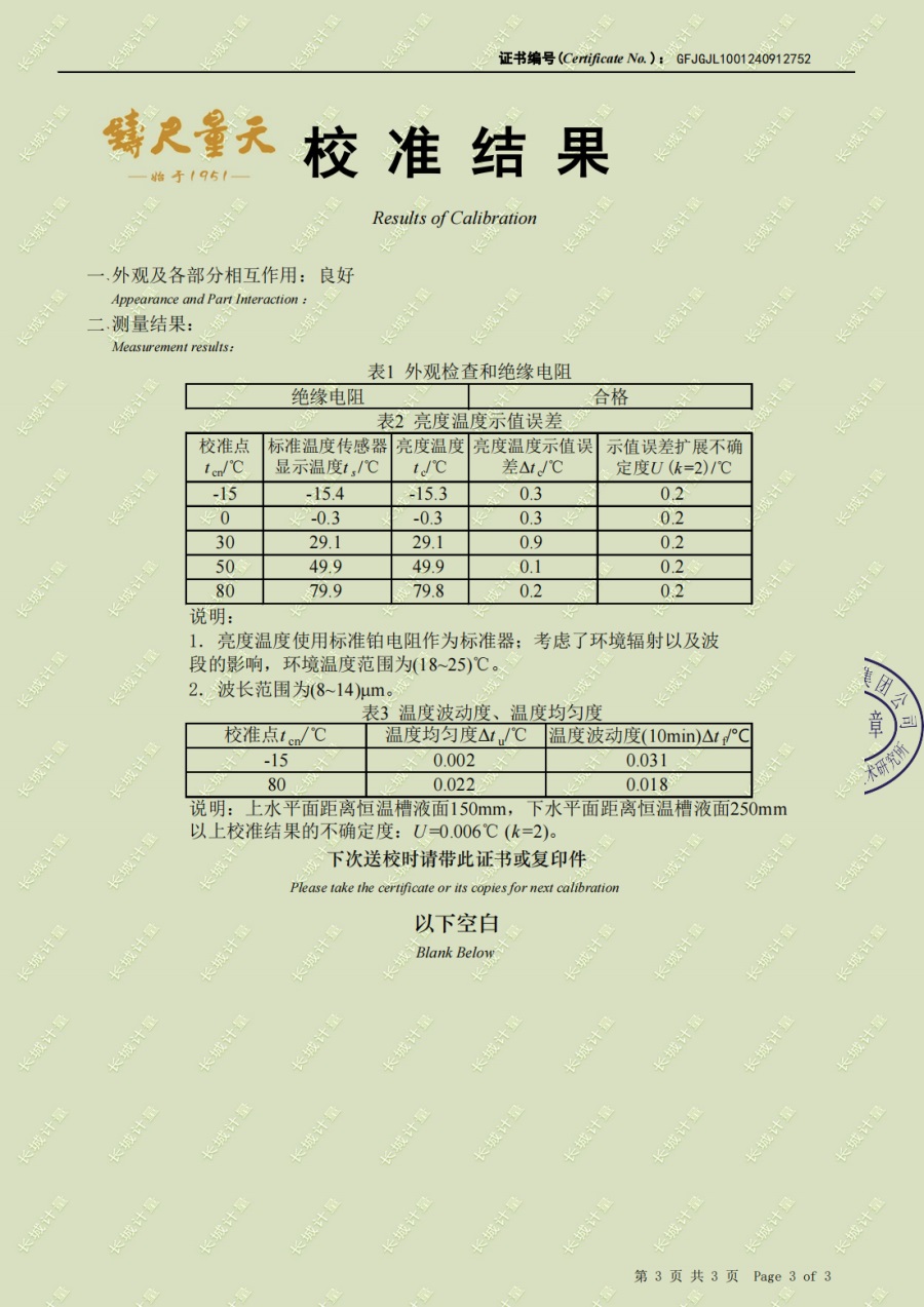 | 上一條:黑體輻射源(50-500℃)校準(zhǔn)證書 | 下一條:智能干體儀(六位半精度)校準(zhǔn)證書 |