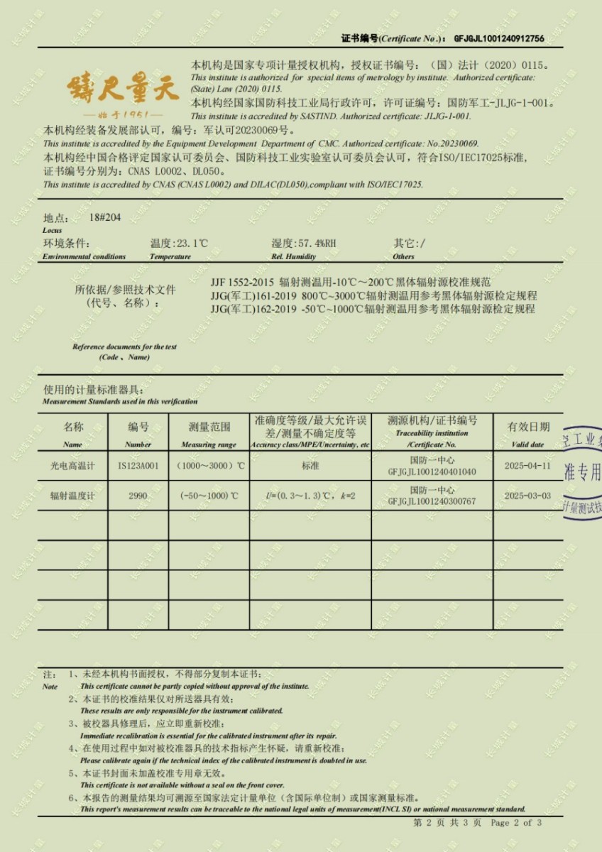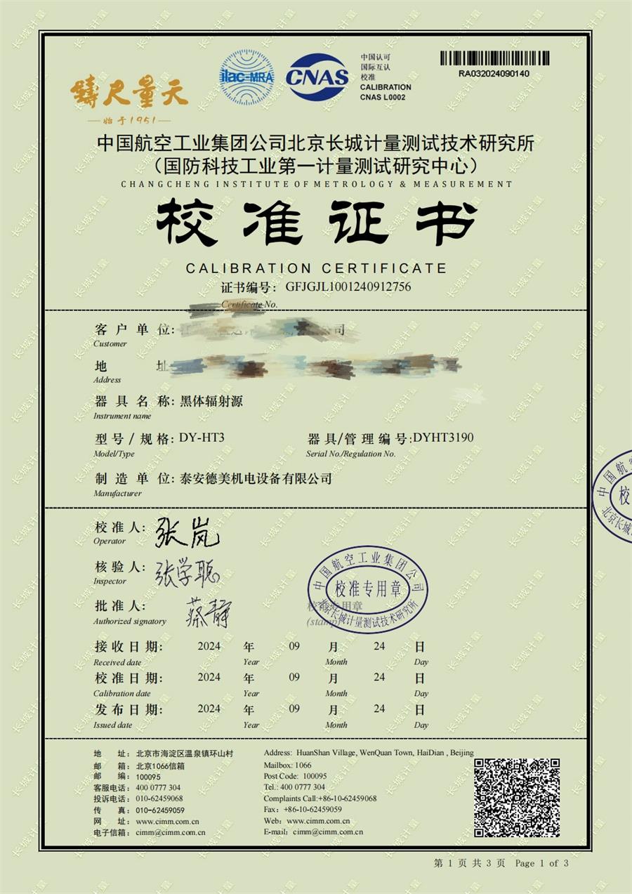 | 上一條:中溫黑體爐(50-500℃)校準(zhǔn)證書 | 下一條:智能干體儀(六位半精度)校準(zhǔn)證書 |