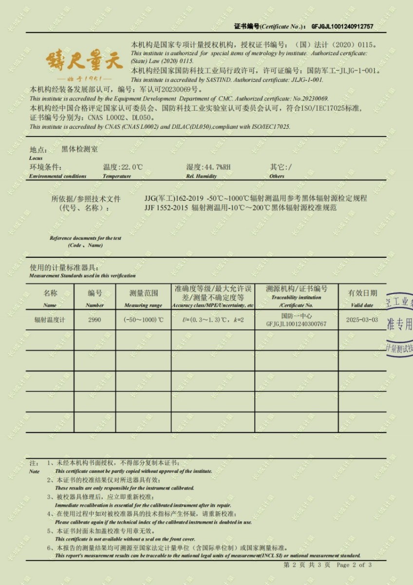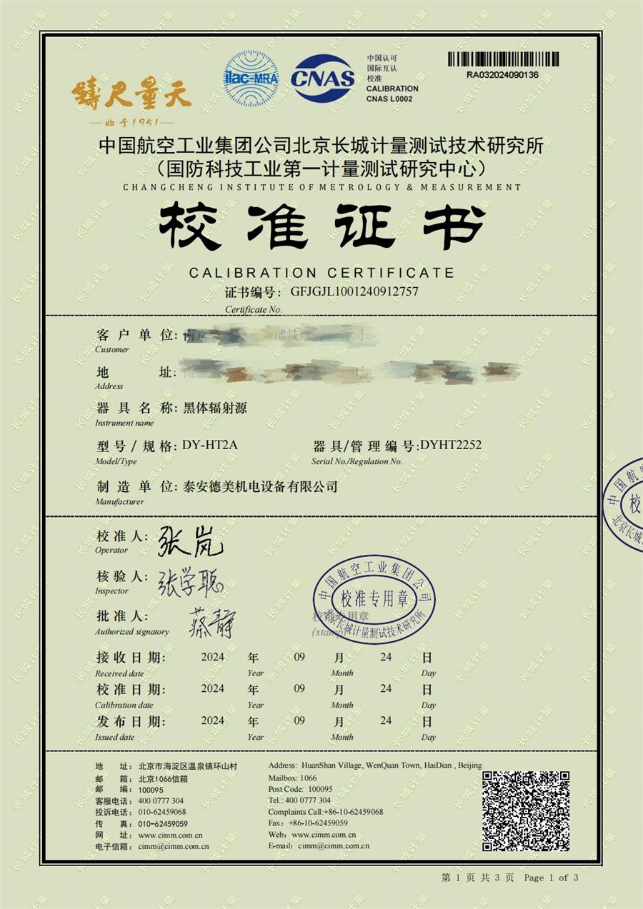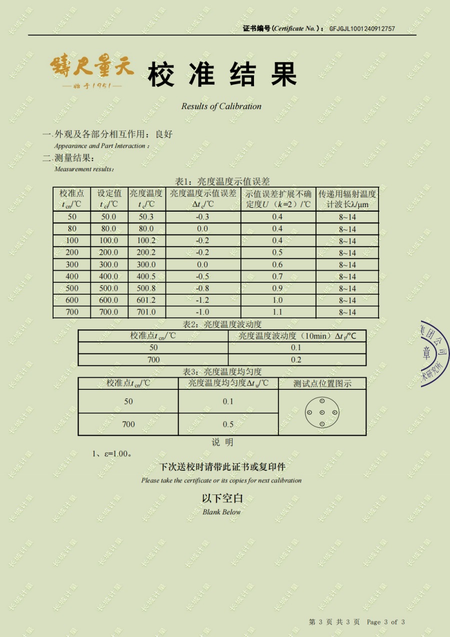 | 上一條:黑體輻射源(50-1200℃)校準(zhǔn)證書 | 下一條:智能干體儀(六位半精度)校準(zhǔn)證書 |