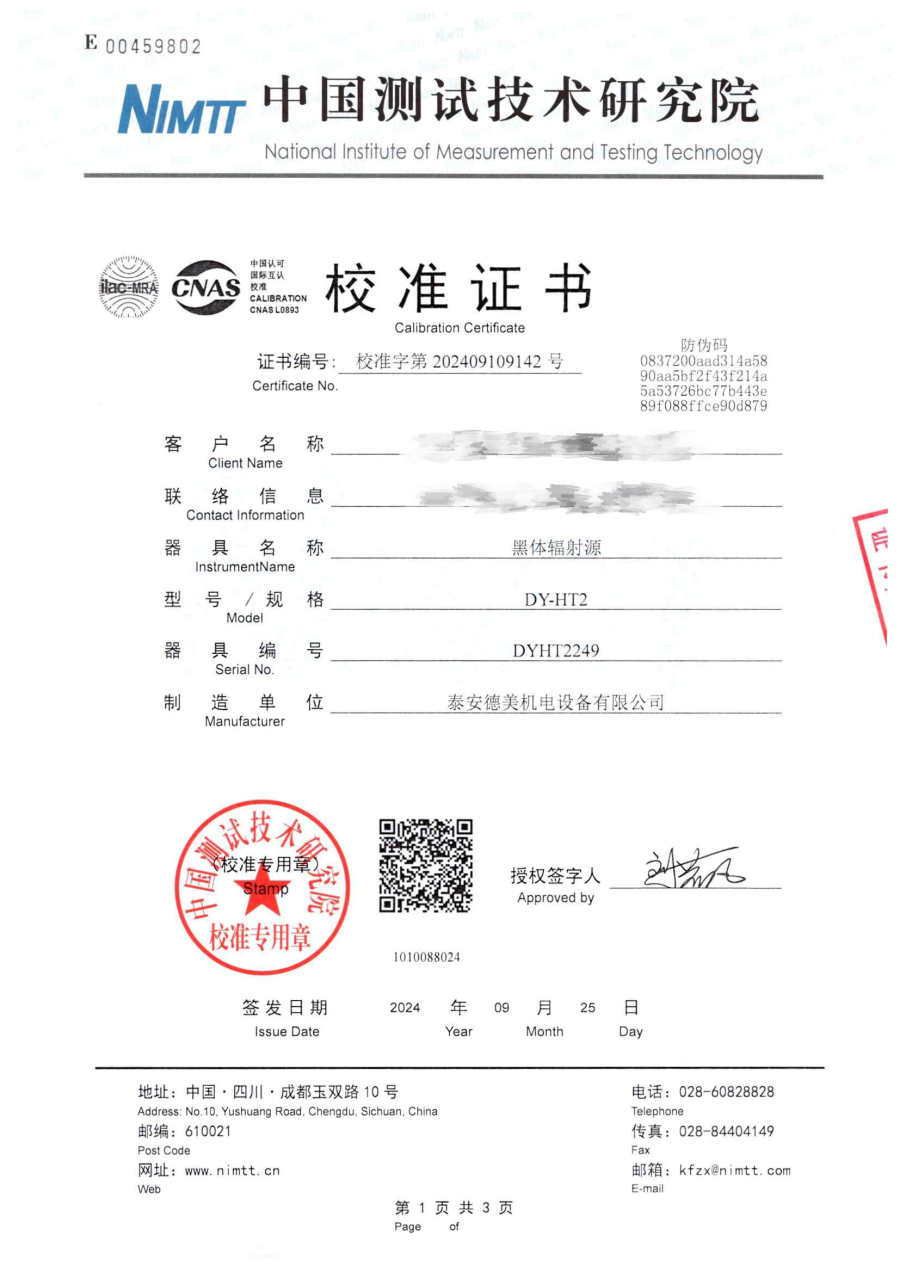 中溫腔式黑體校準(zhǔn)證書 2024-10-21 本文被閱讀 8886 次
