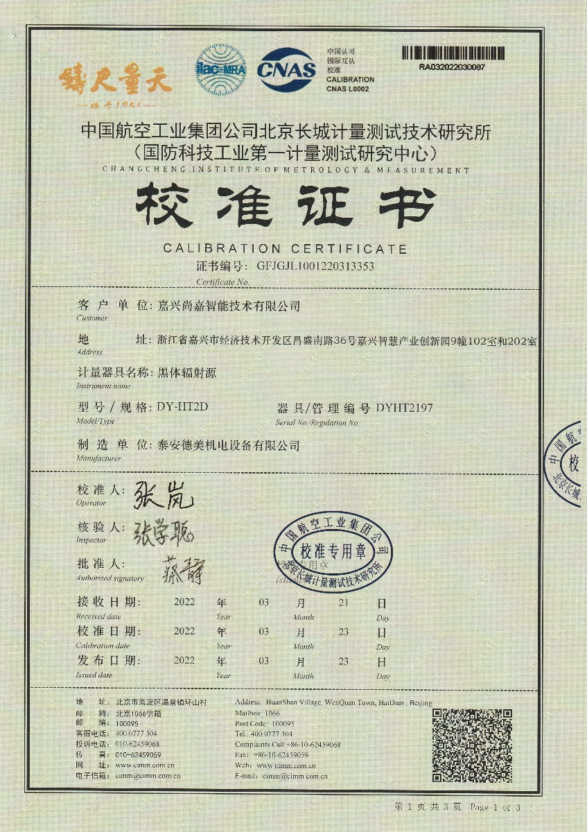 上一條:嘉興尚嘉智能技術(shù)有限公司-黑體輻射源(DY-HT1A)下一條:智能干體儀(六位半精度)校準(zhǔn)證書
