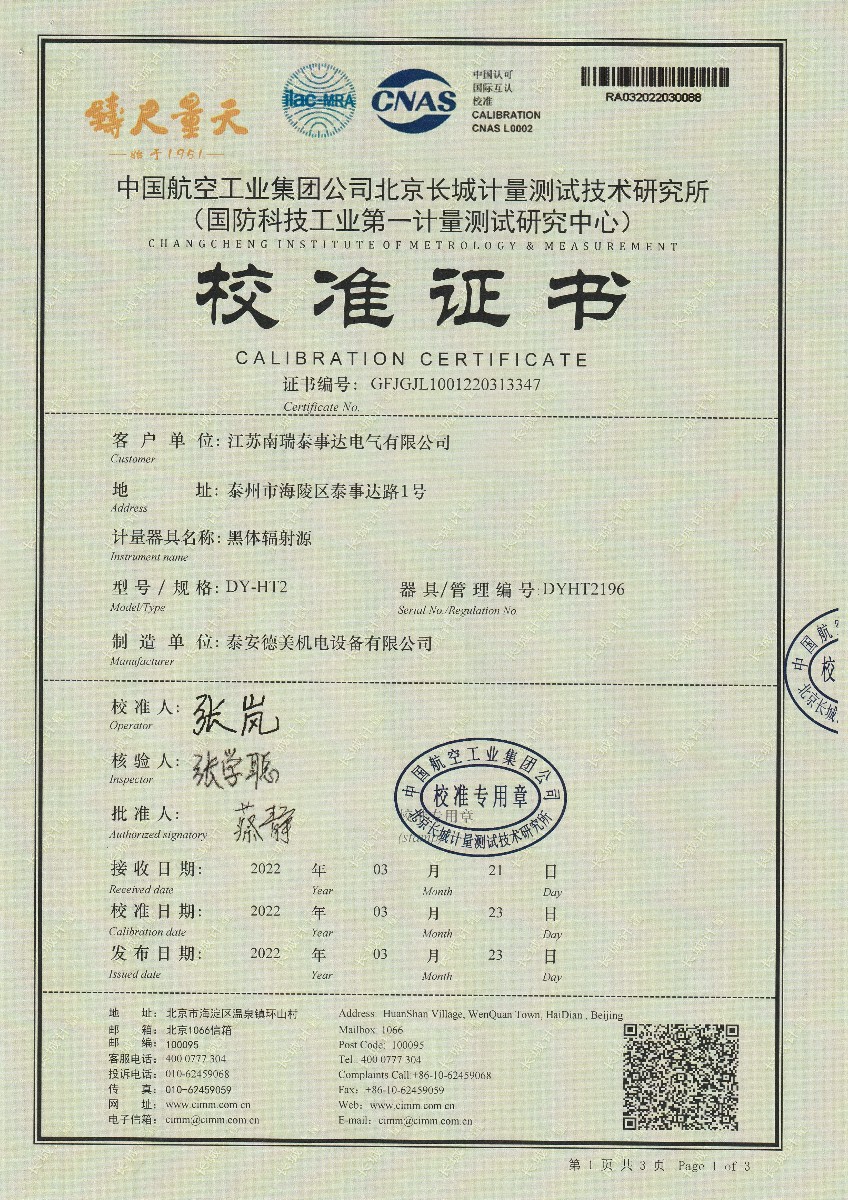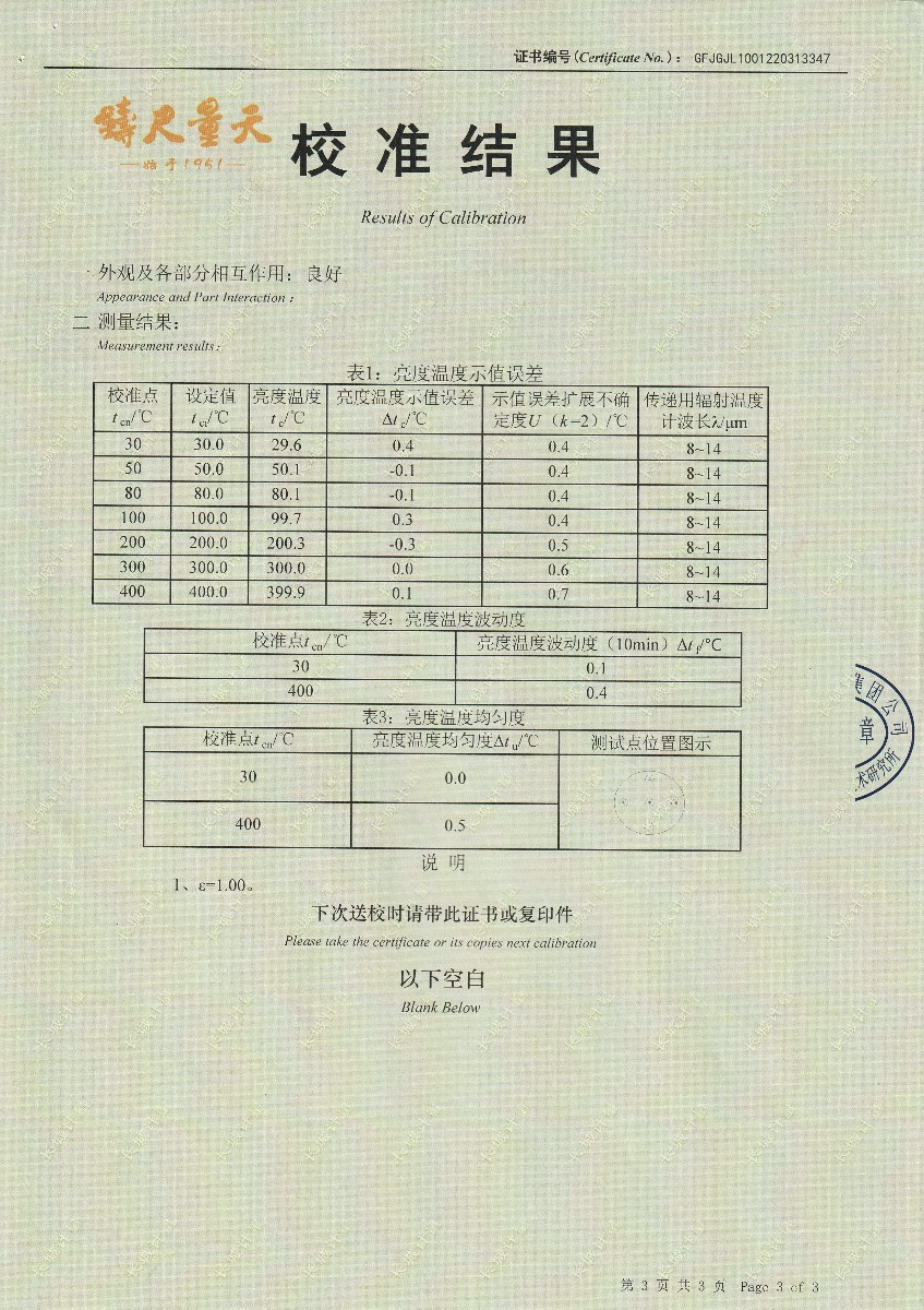 | 上一條:嘉興尚嘉智能技術(shù)有限公司黑體輻射源(DY-HT2D) | 下一條:智能干體儀(六位半精度)校準(zhǔn)證書 |