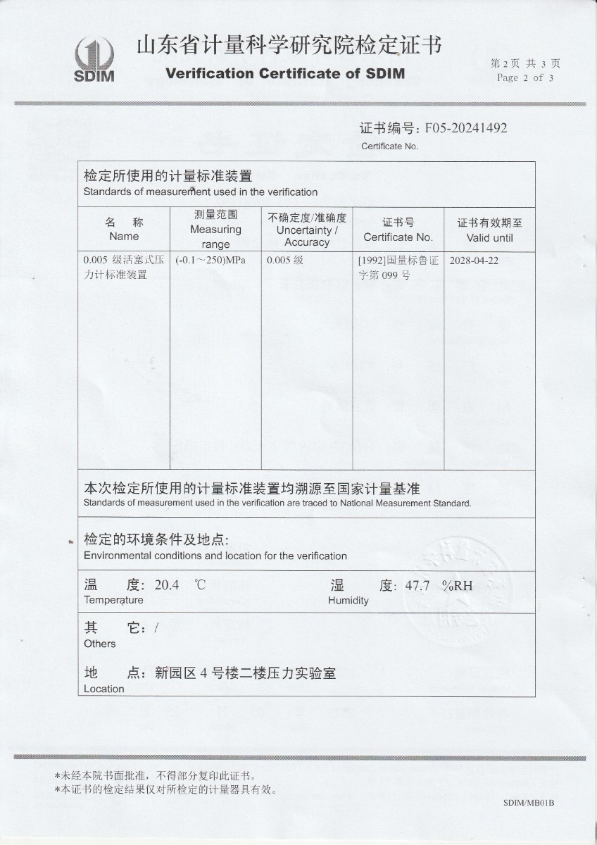 數(shù)字壓力表檢定證書 2024-4-11 本文被閱讀 6462 次