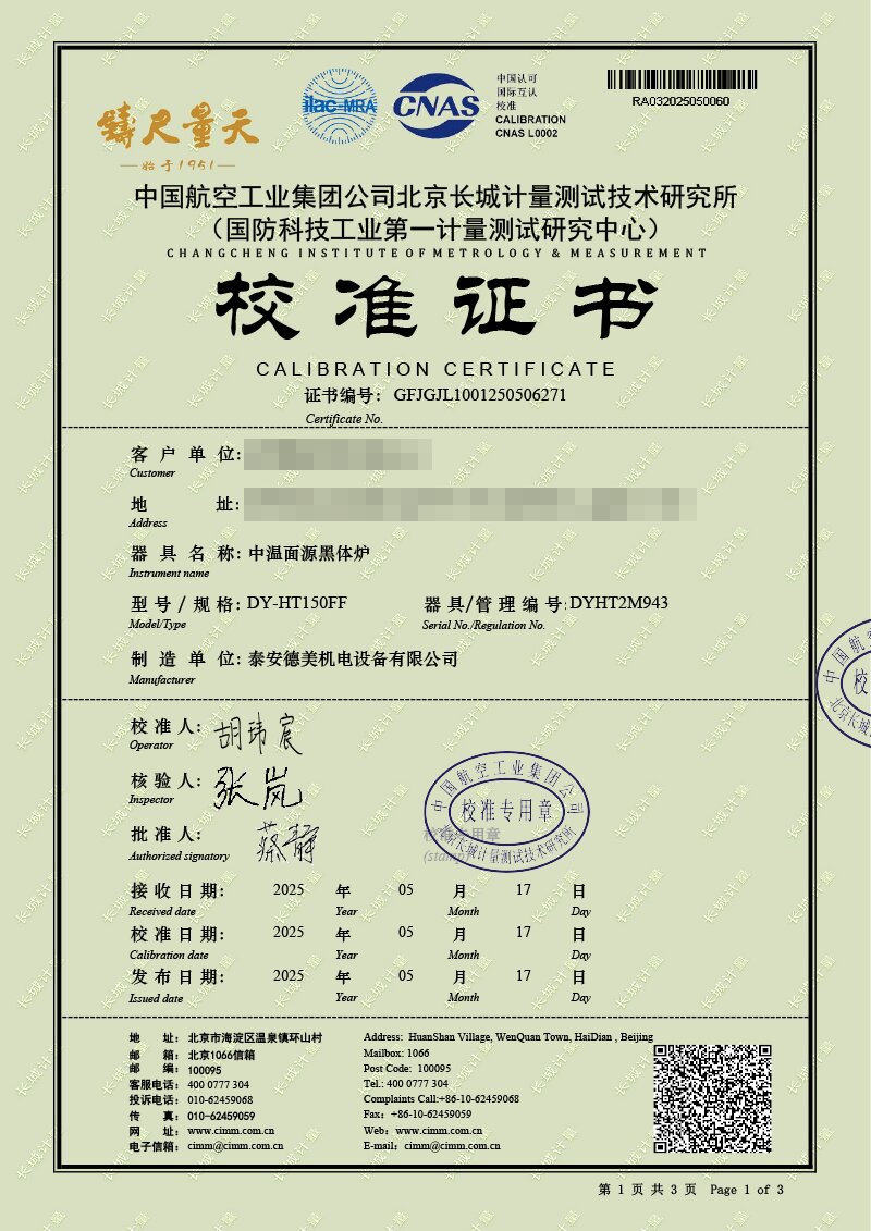 | 上一條:浴式黑體輻射源(-30-80℃)校準(zhǔn)證書 | 下一條:智能干體儀(六位半精度)校準(zhǔn)證書 |