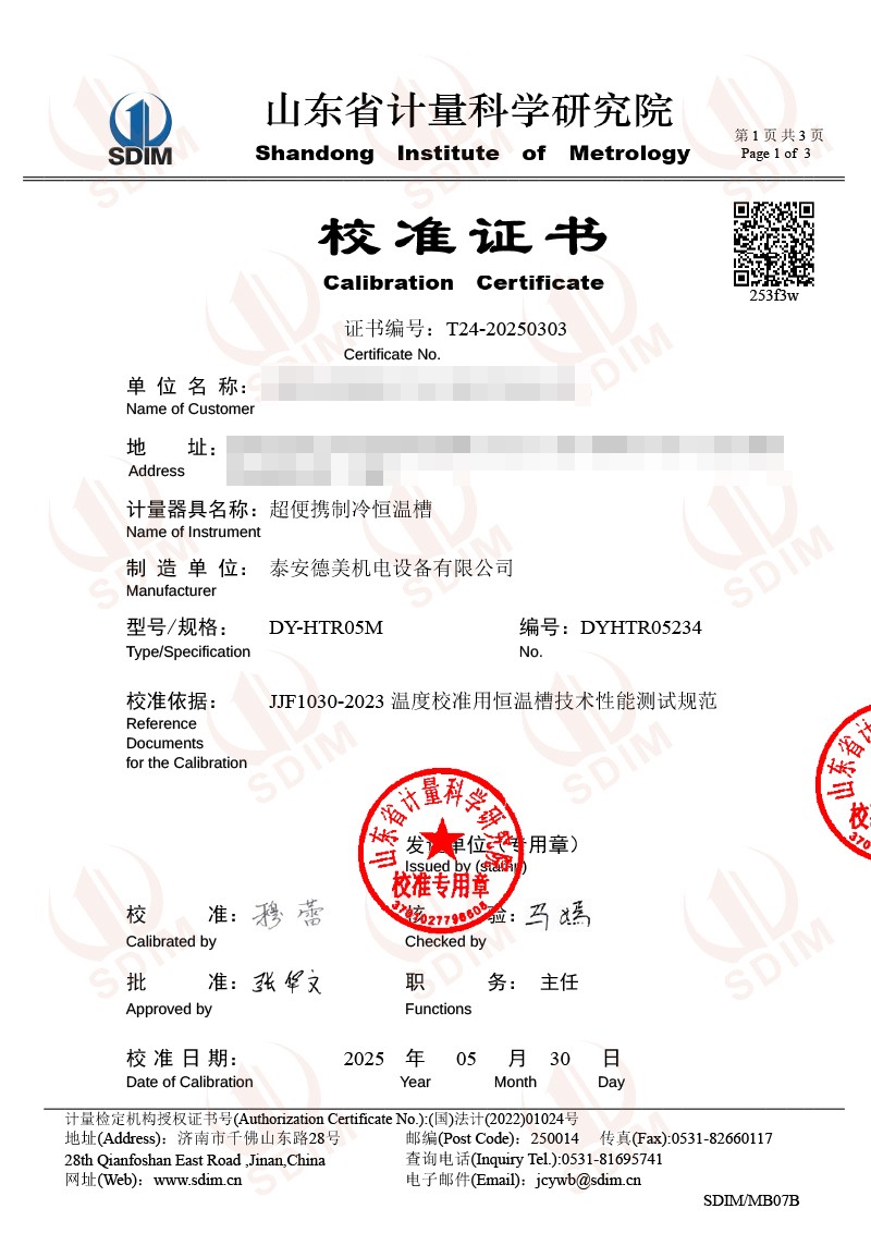 | 上一條:腔式黑體輻射源(800-1450℃)校準(zhǔn)證書 | 下一條:智能干體儀(六位半精度)校準(zhǔn)證書 |
