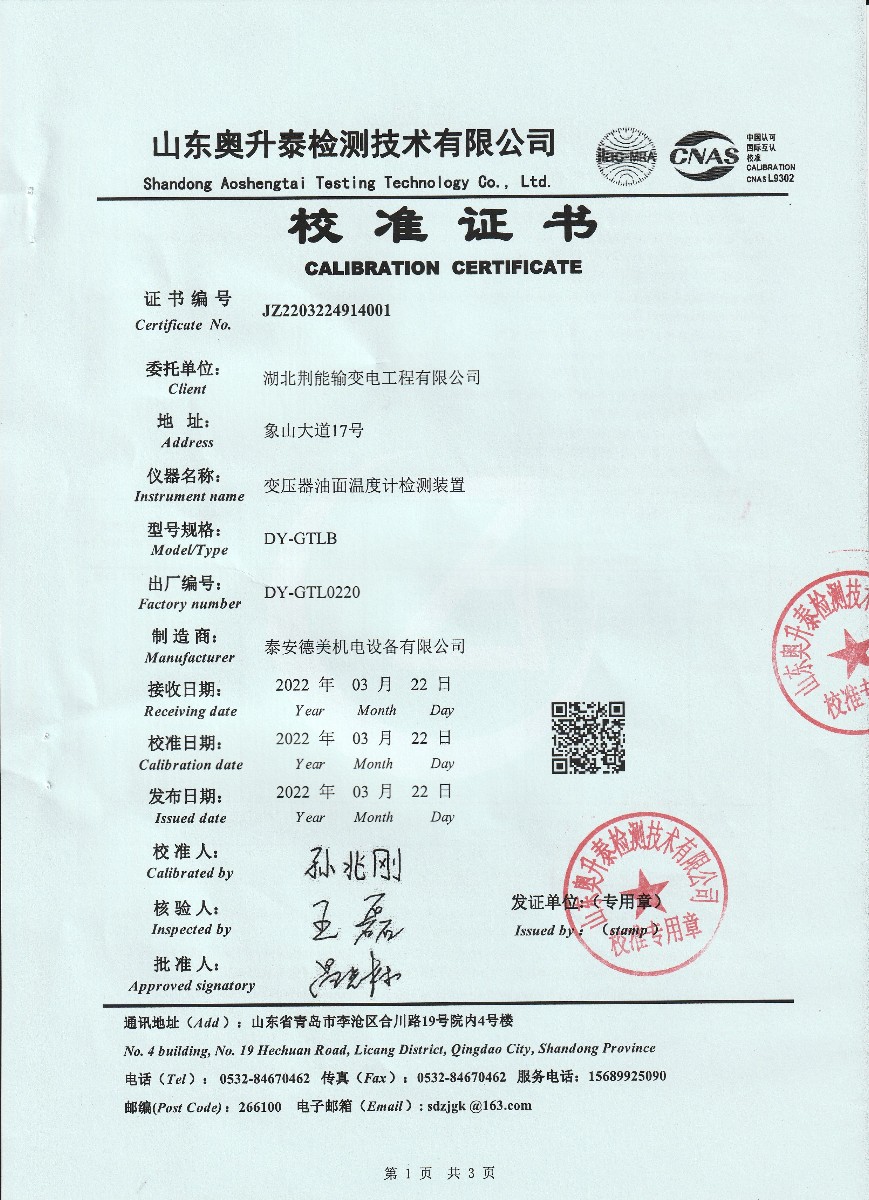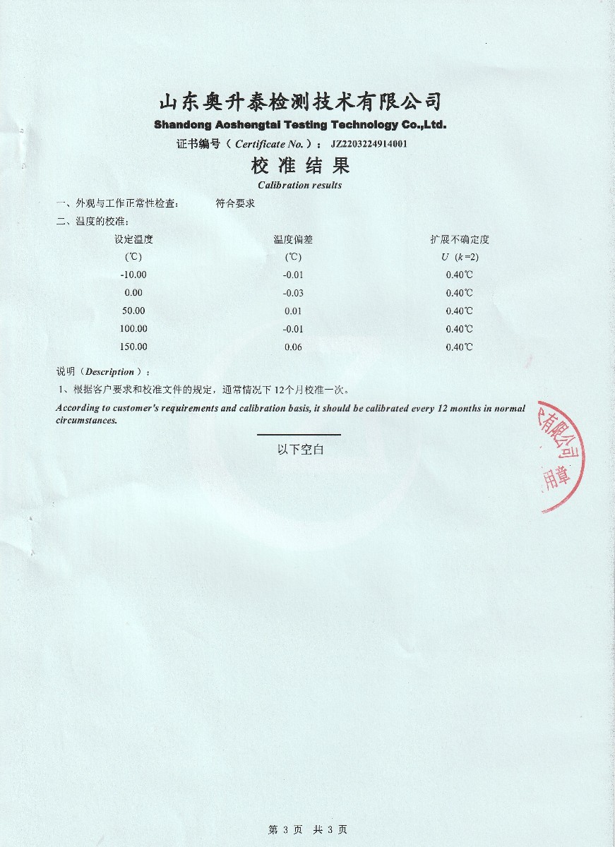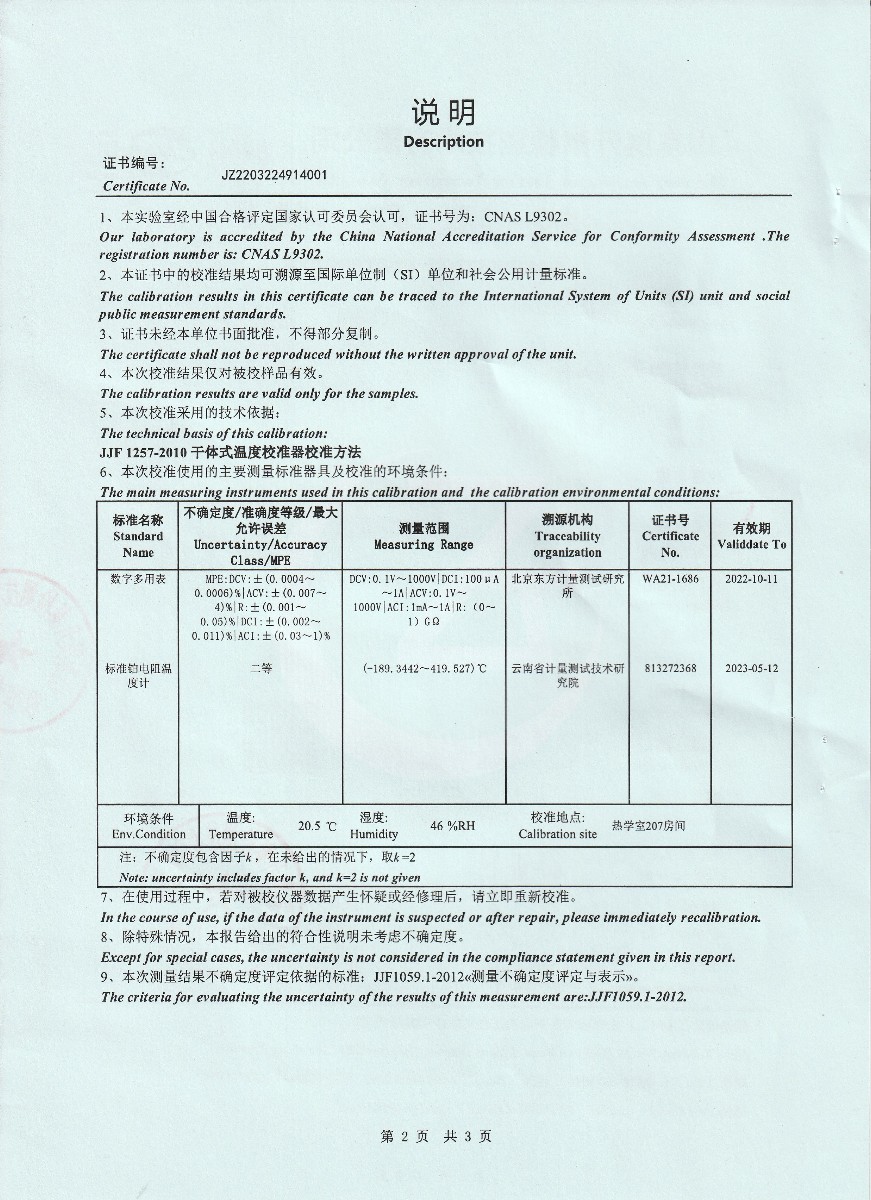 | 上一條:晶科能源(海寧)有限公司-溫濕度檢定箱 | 下一條:智能干體儀(六位半精度)校準(zhǔn)證書 |