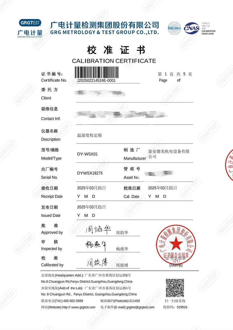 | 上一條:溫濕度檢定箱18277(-5~65℃)校準(zhǔn)證書 | 下一條:智能干體儀(六位半精度)校準(zhǔn)證書 |