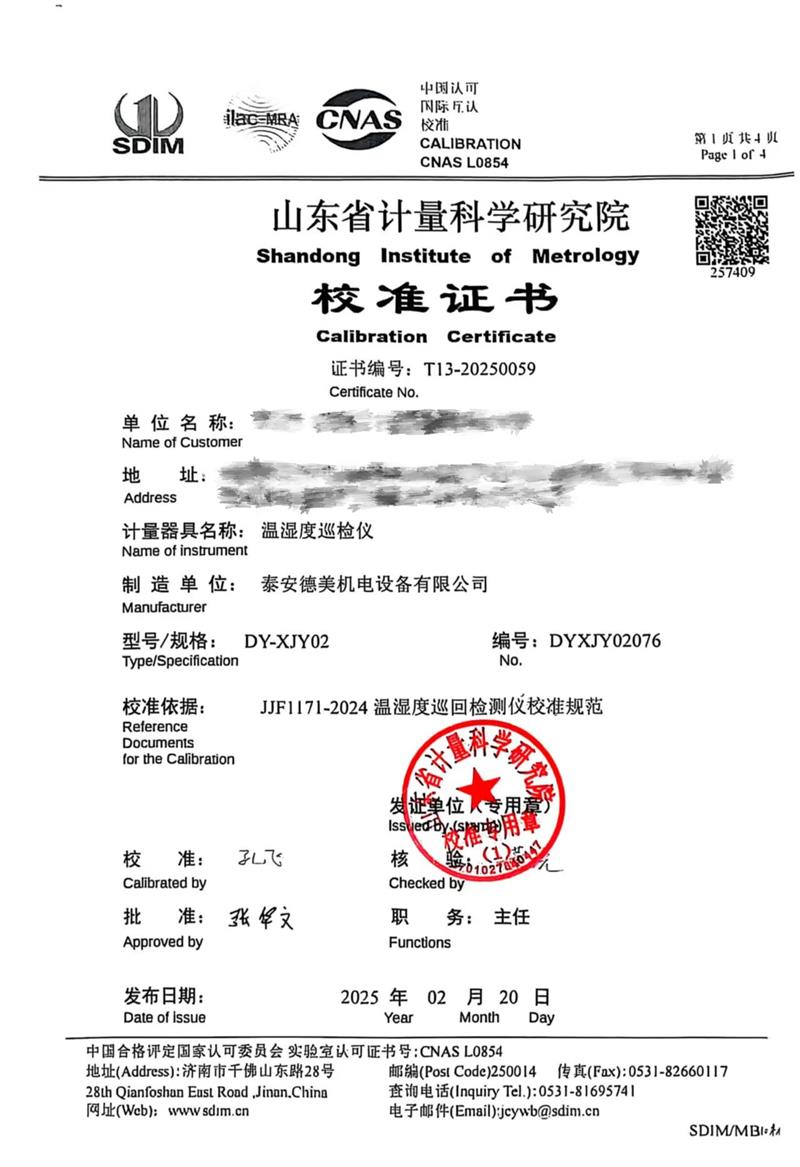 溫濕度巡檢儀校準(zhǔn)證書 2025-2-22 本文被閱讀 4746 次