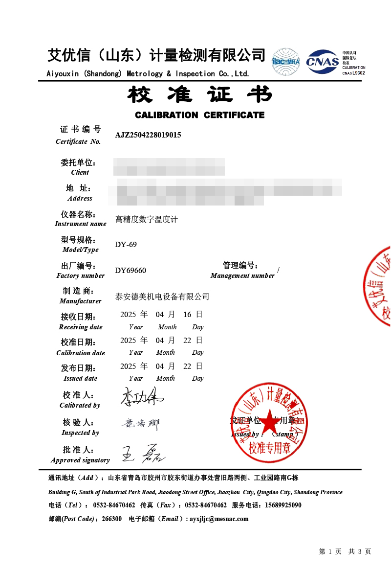| 上一條:DY-HT1M-150D超低溫面源黑體爐(輻射面150mm) | 下一條:智能干體儀(六位半精度)校準(zhǔn)證書 |