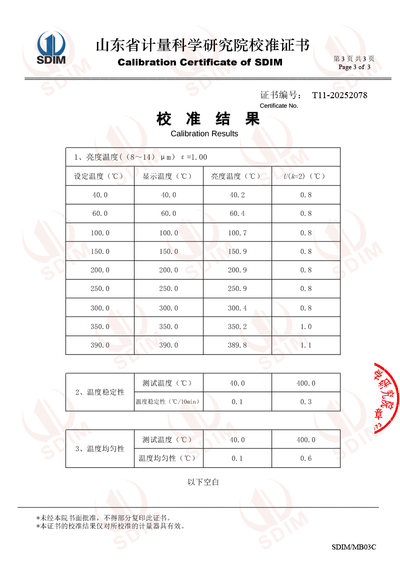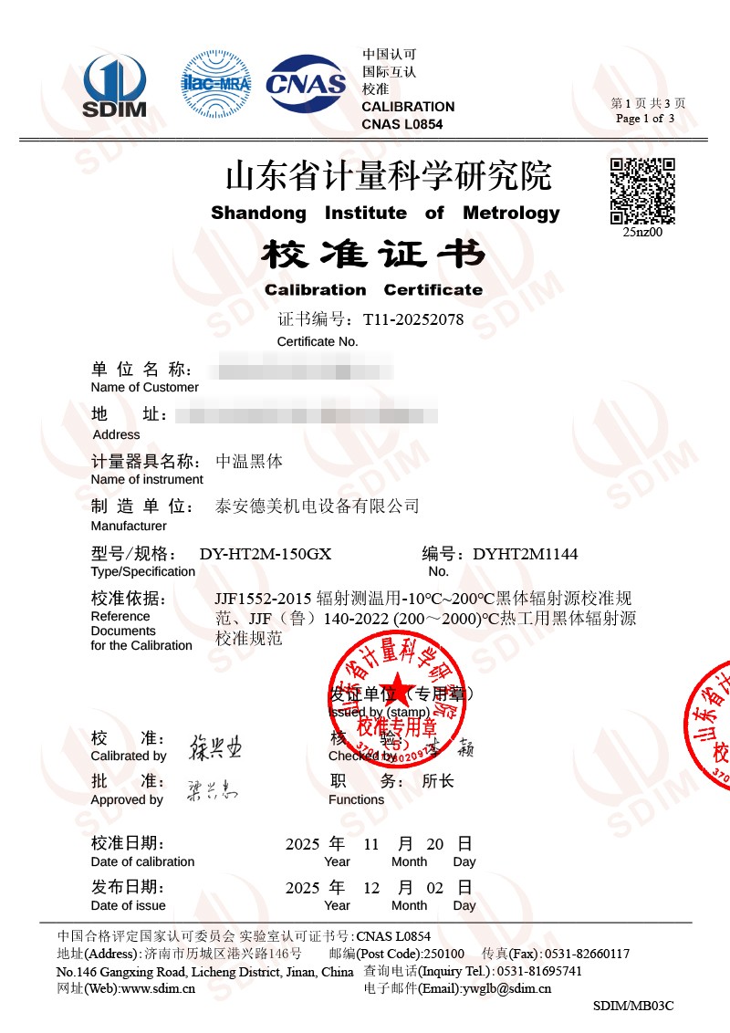 中溫黑體校準(zhǔn)證書 2025-12-4 本文被閱讀 222 次