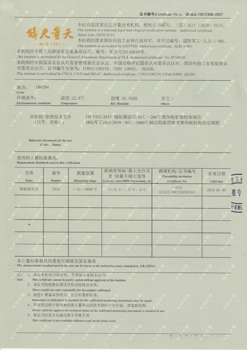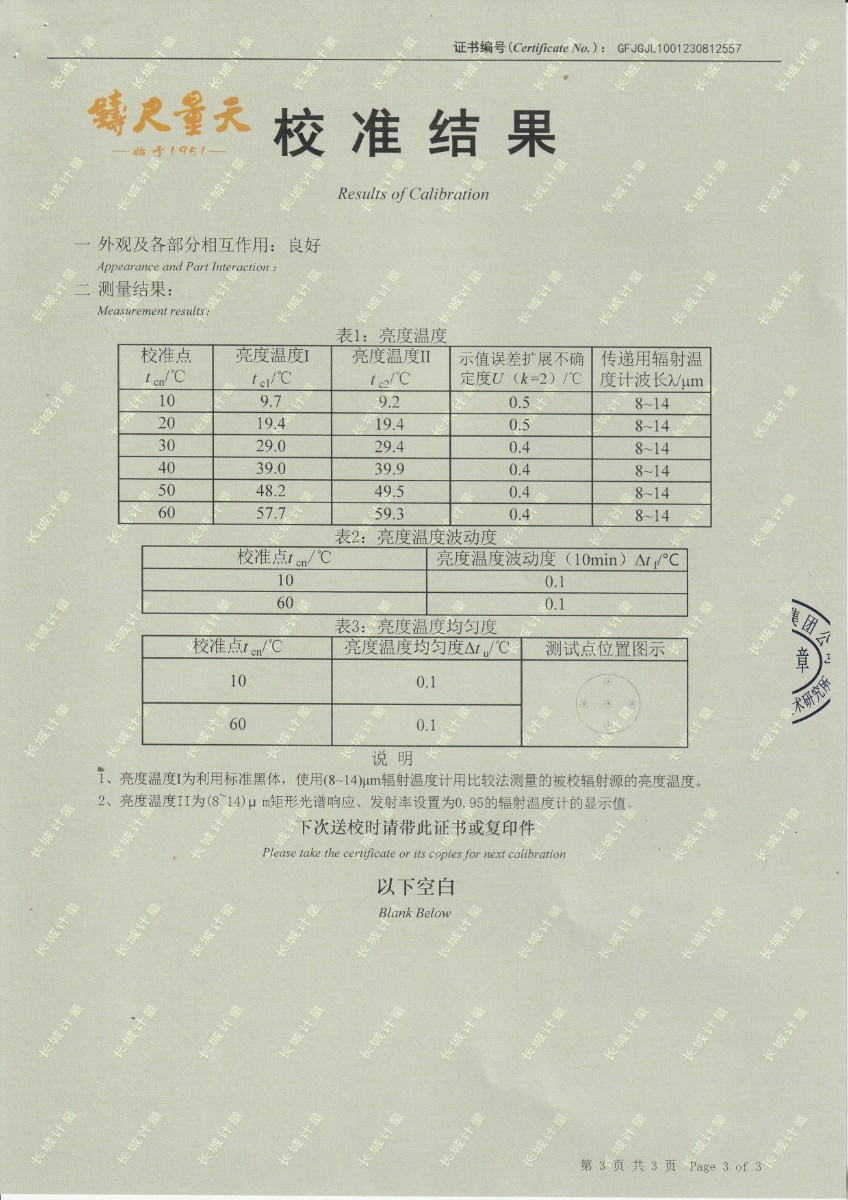 面源黑體爐DYHT1M141校準(zhǔn)證書 2023-9-20 本文被閱讀 8646 次