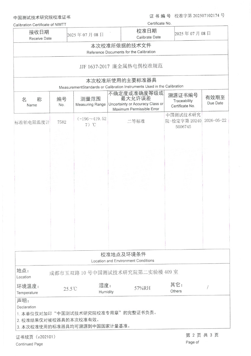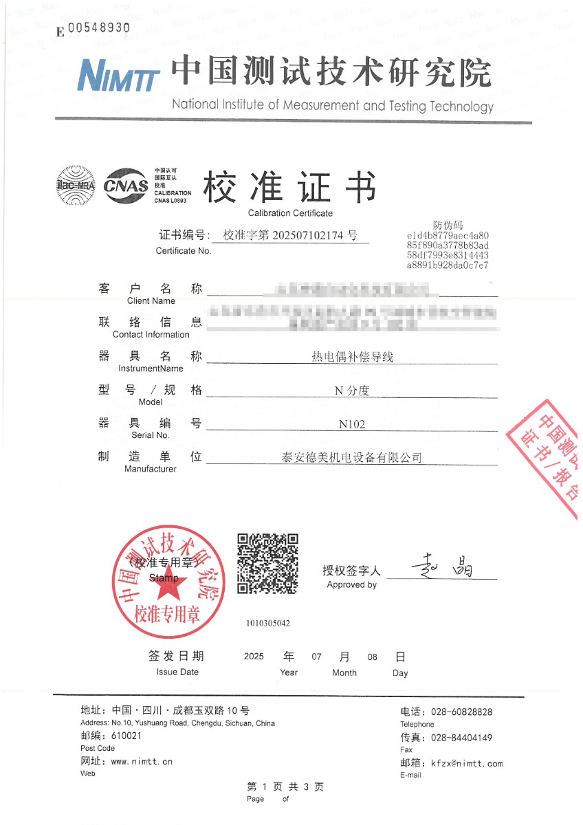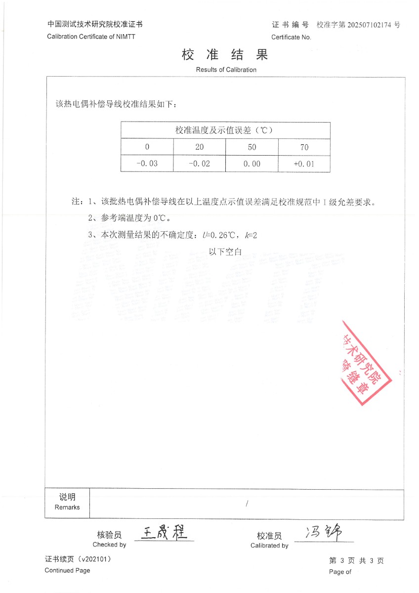 熱電偶補償導(dǎo)線(N分度)校準證書 2025-7-10 本文被閱讀 2563 次