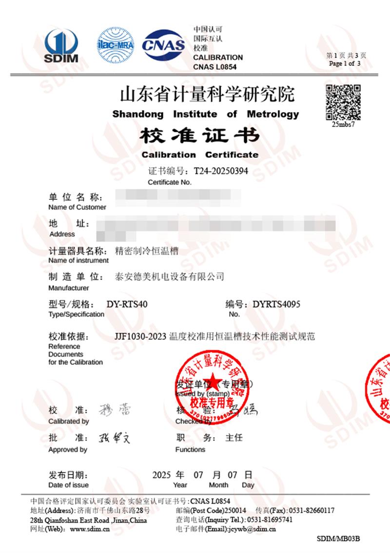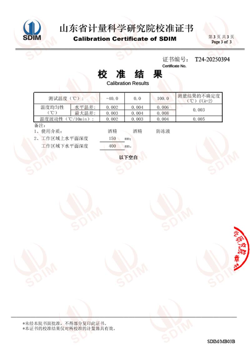 制冷恒溫槽(-40-100℃)校準證書 2025-7-10 本文被閱讀 2818 次