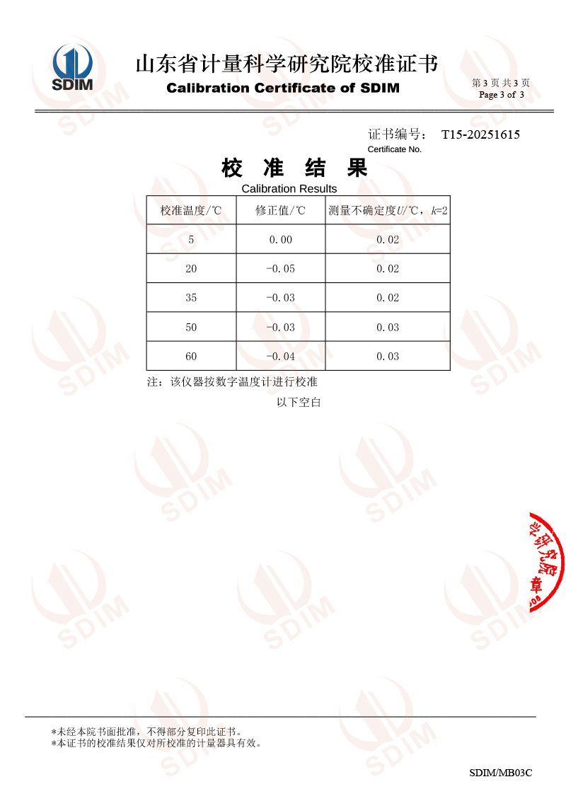 高精度數(shù)字溫度計(-20-100℃)校準(zhǔn)證書
