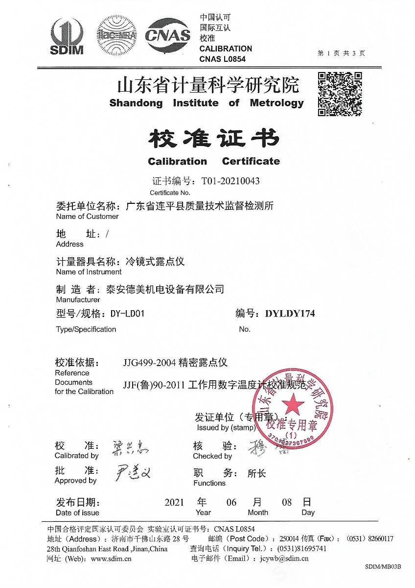 廣東省連平縣質(zhì)量技術(shù)監(jiān)督檢測所-冷鏡式露點儀 2021-6-10 本文被閱讀 15626 次