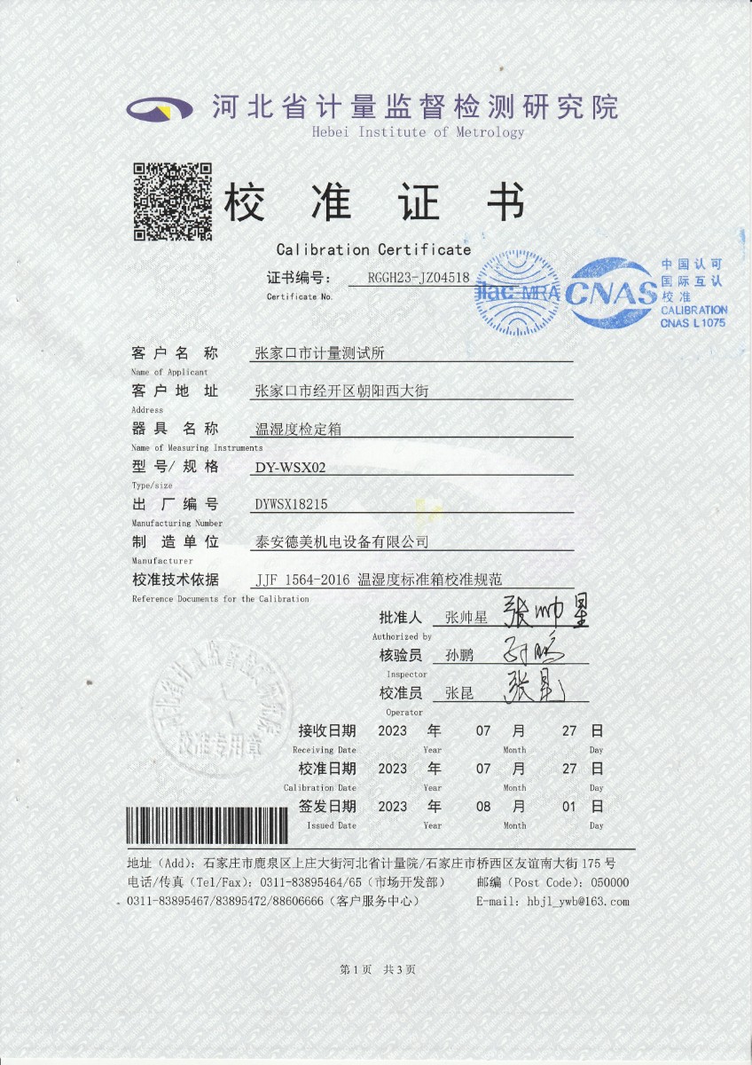 張家口市計(jì)量測(cè)試所-溫濕度檢定箱 2023-8-12 本文被閱讀 14876 次