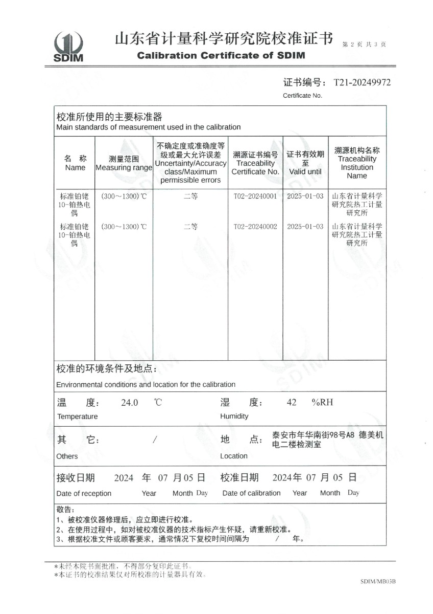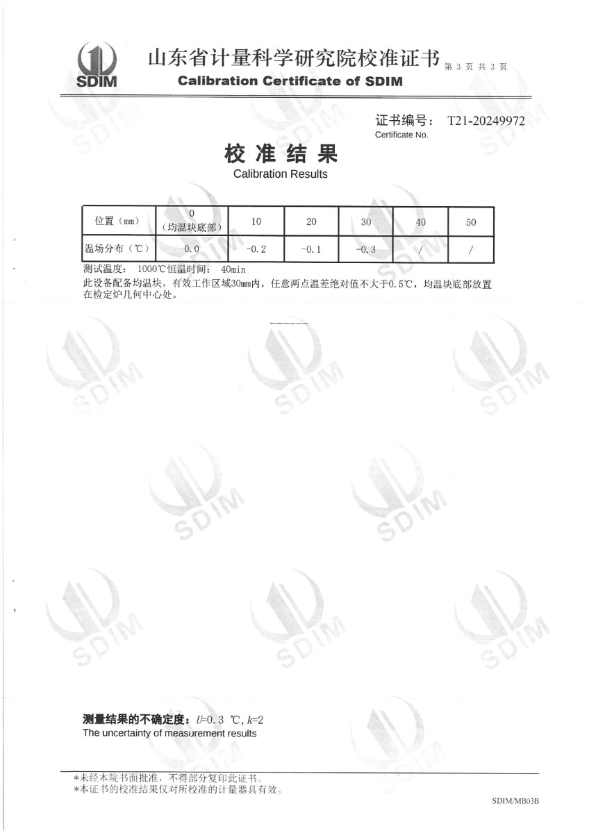 熱電偶檢定爐(300~1200℃)校準證書 2024-7-11 本文被閱讀 6668 次